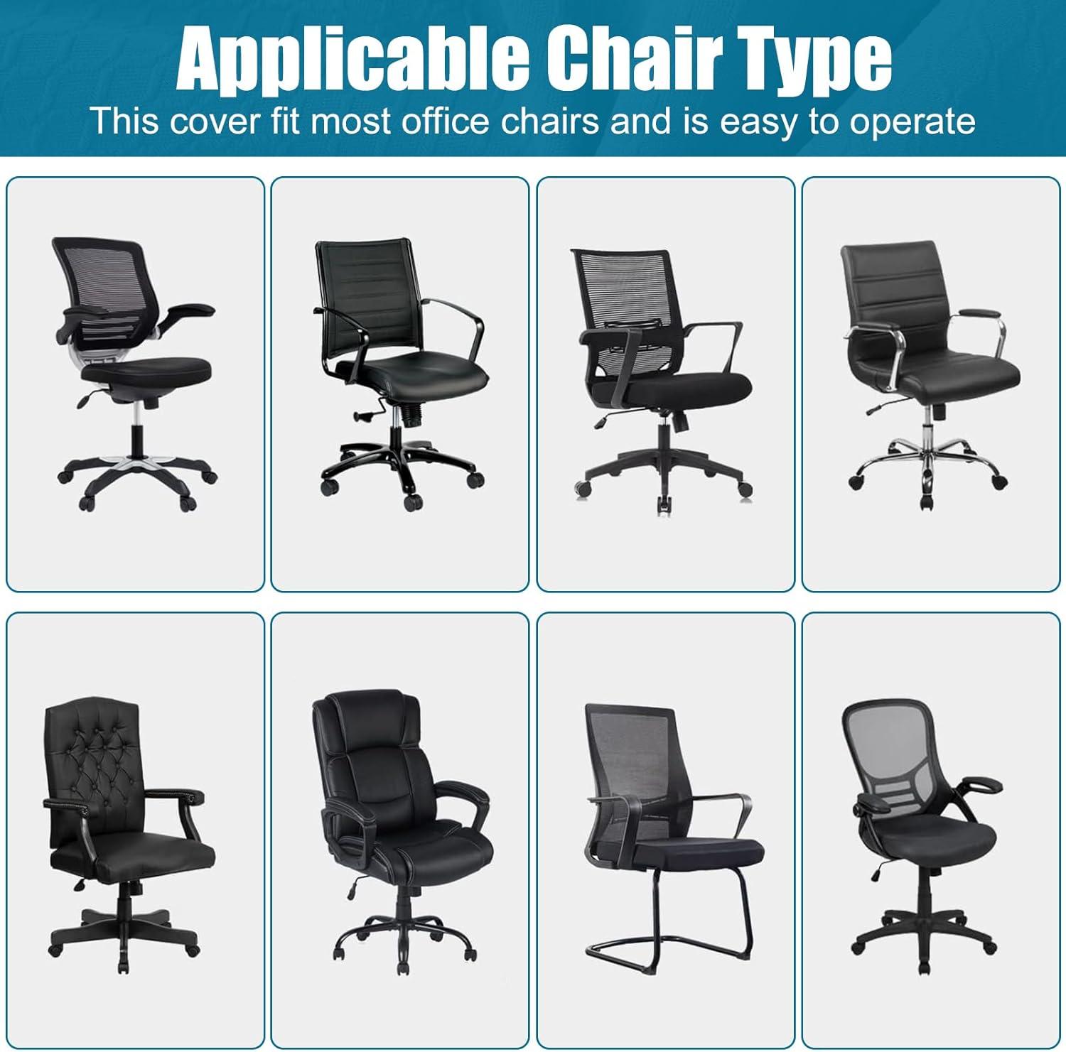 Material: Made of 92% polyester and 8% spandex, stretches to fit most office chairs easily. Equipped with elastic band, easy to fit and anti-slip, wrinkle resistance and reusable.