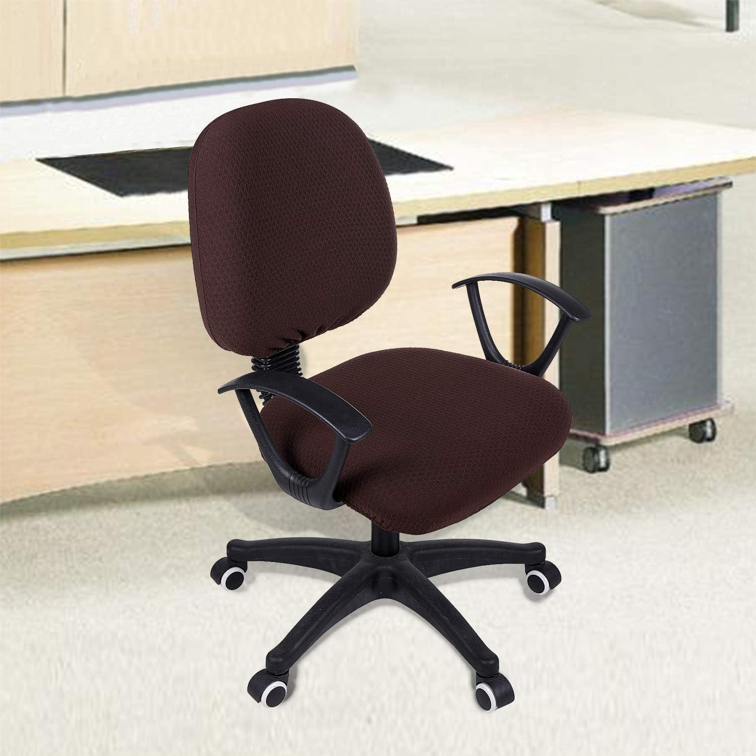 imageSmiry Stretch Jacquard Office Computer Chair Covers Removable Washable Universal Desk Rotating Chair Slipcovers Protector Seat  Backrest Cover GreyChocolate