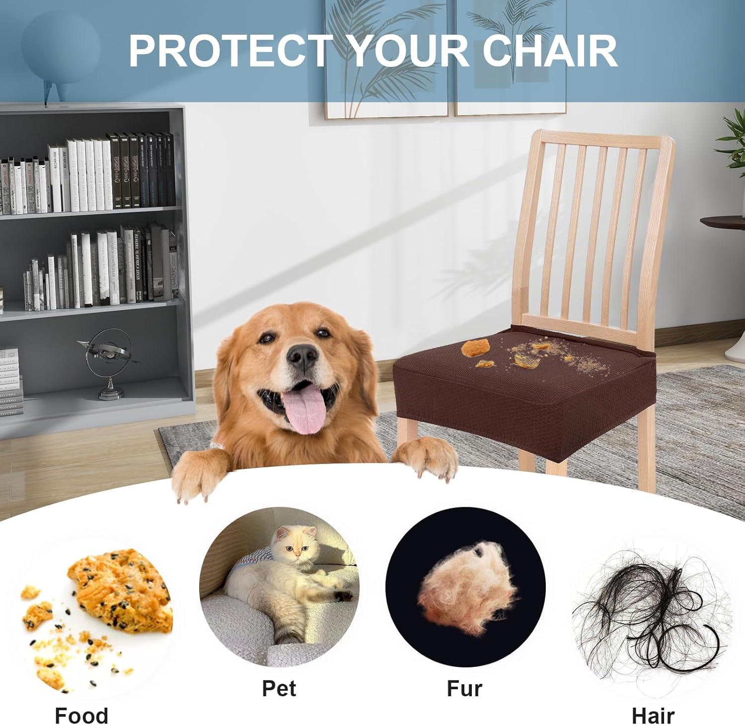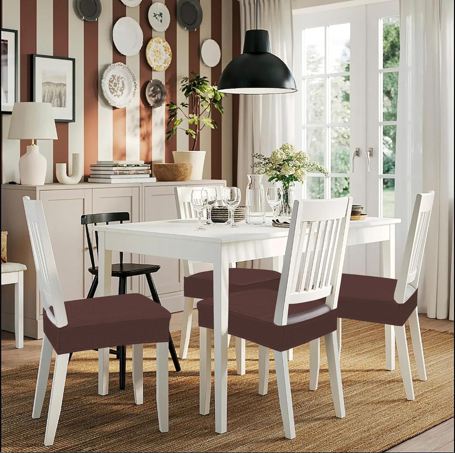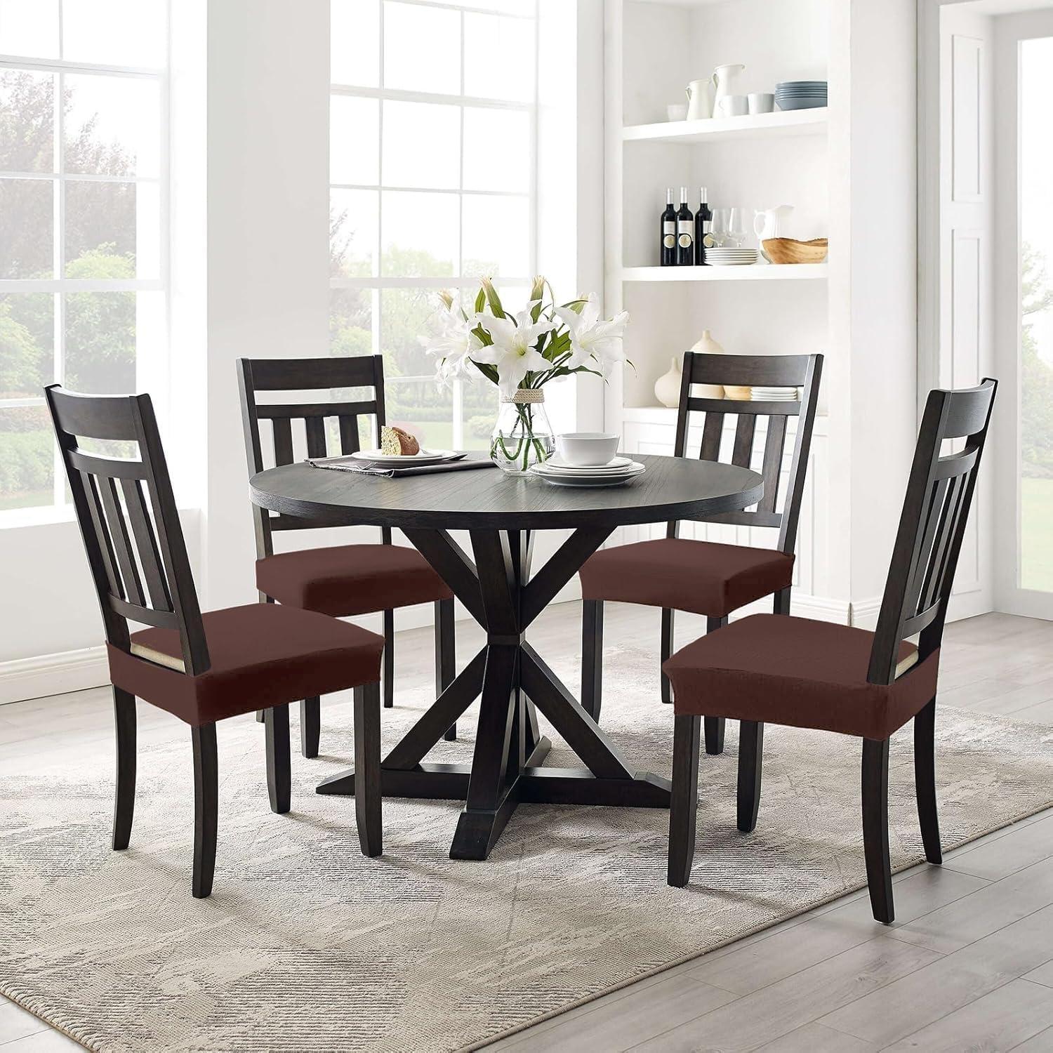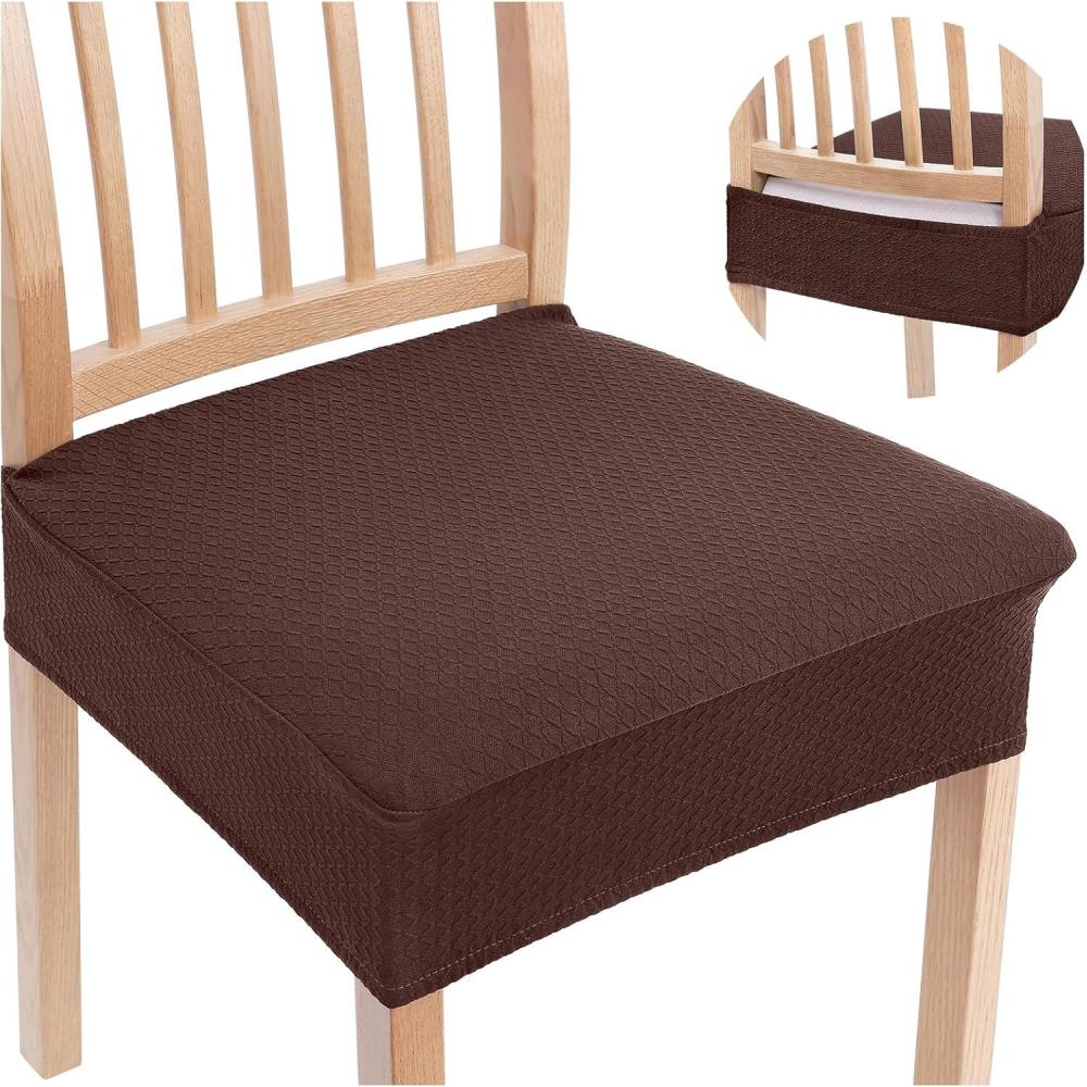 Smiry Stretch Jacquard Seat Covers for Dining Room Chairs Set of 6, Removable Washable Chair Seat Protector Slipcovers, No Rear Covers, Brown(Light Chocolate)