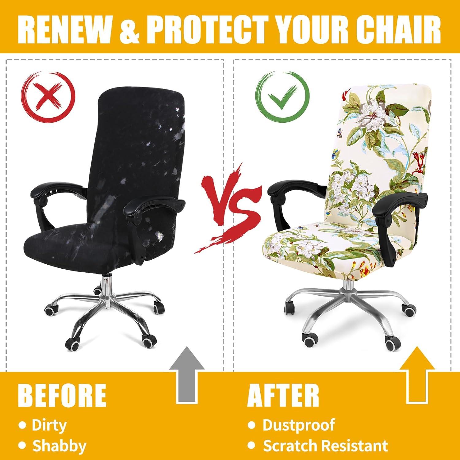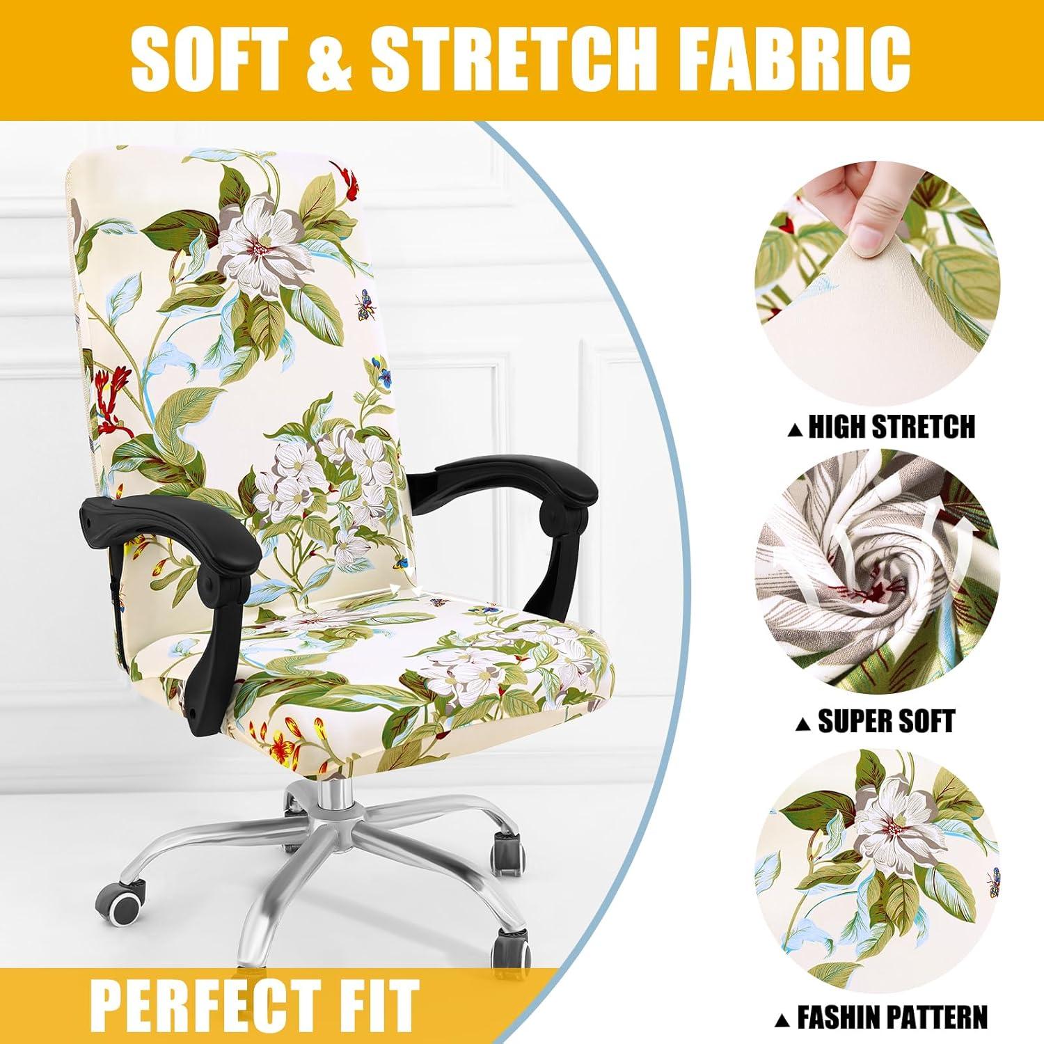 SOFT STRETCH MATERIAL – Smiry office chair covers are made of 95% polyester and 5% spandex fabric, soft and comfortable, sturdy and long lasting. High elastic fit to protect your chair from spills, stains and tearing perfectly.