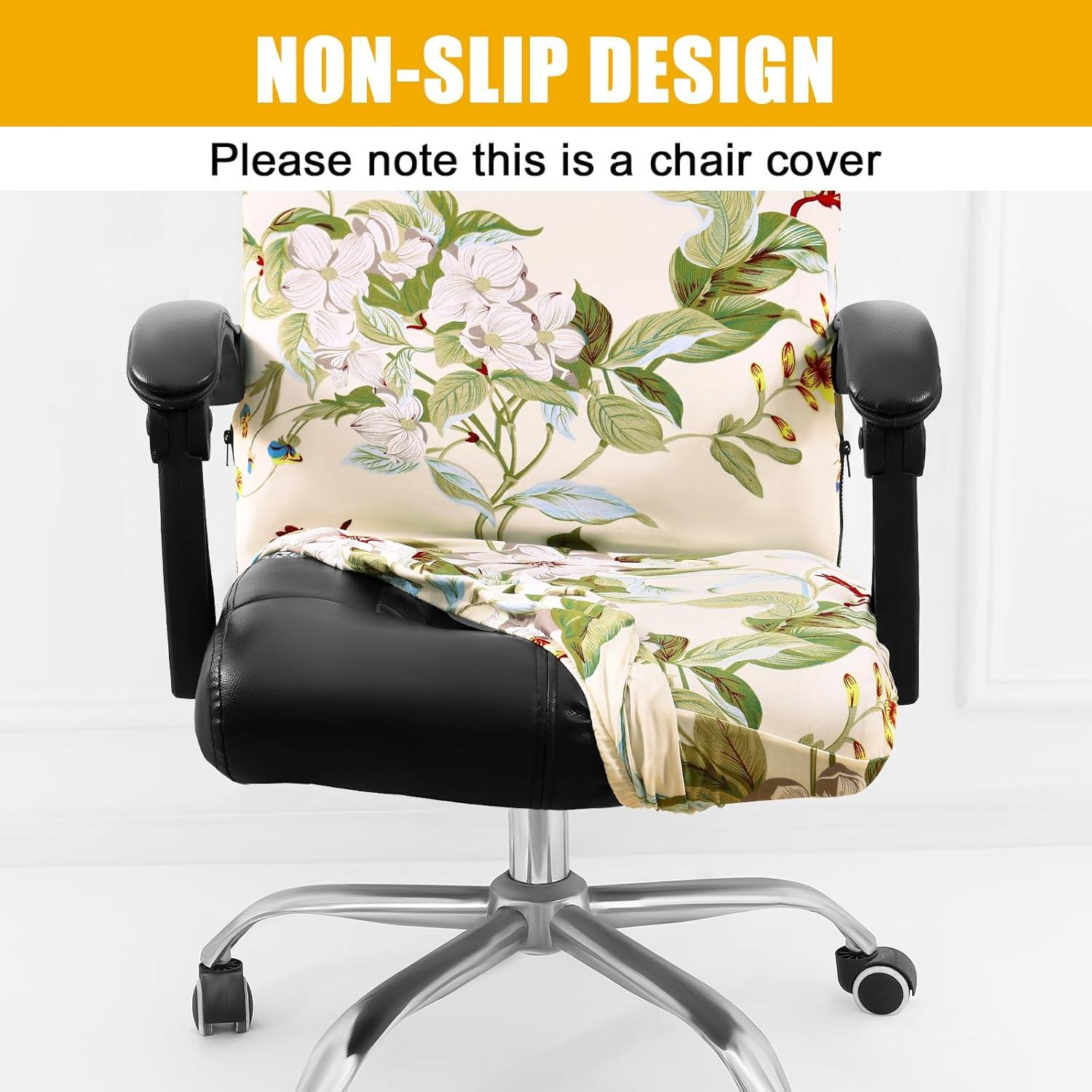 imageSmiry Stretch Printed Office Computer Chair Covers Universal Desk Rotating Chair Slipcovers Removable Washable Soft Fit AntiDust Spandex Protector Cover with Zipper NavyBeige and Green