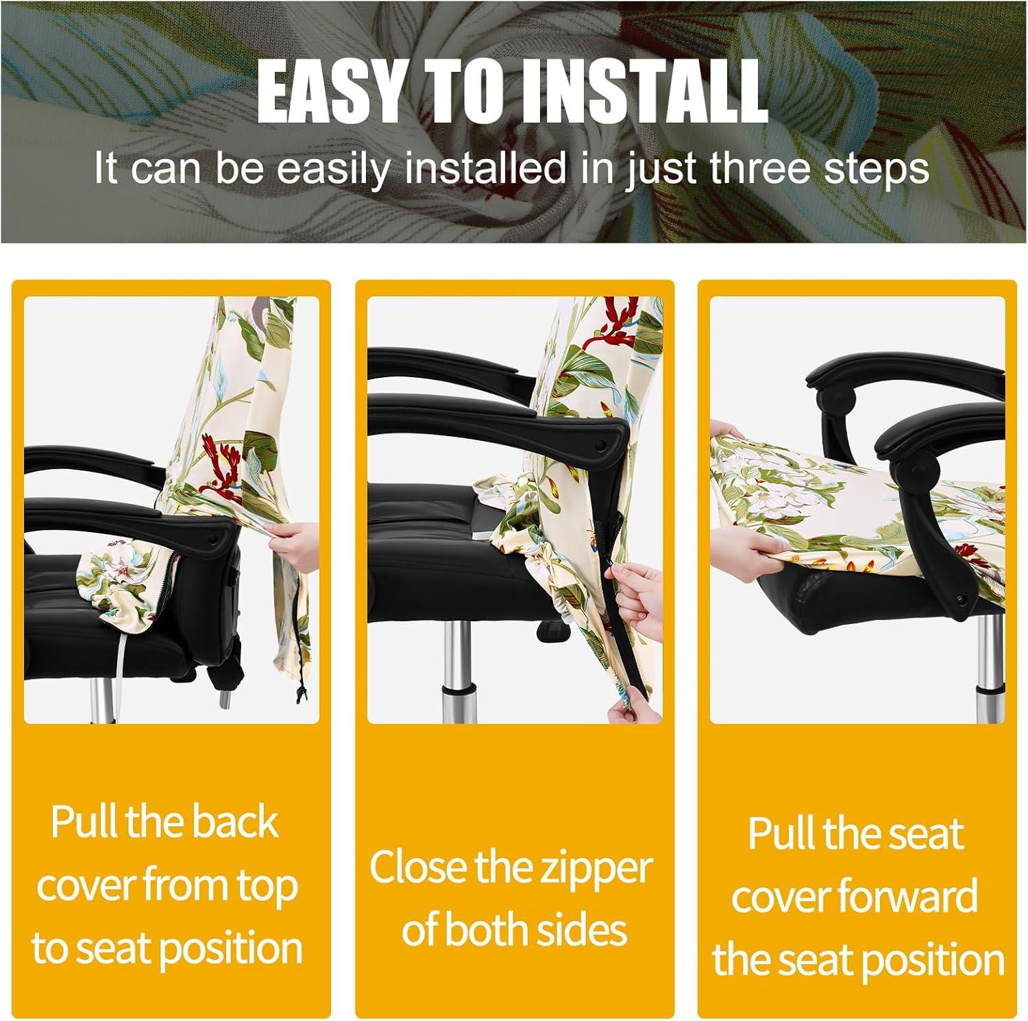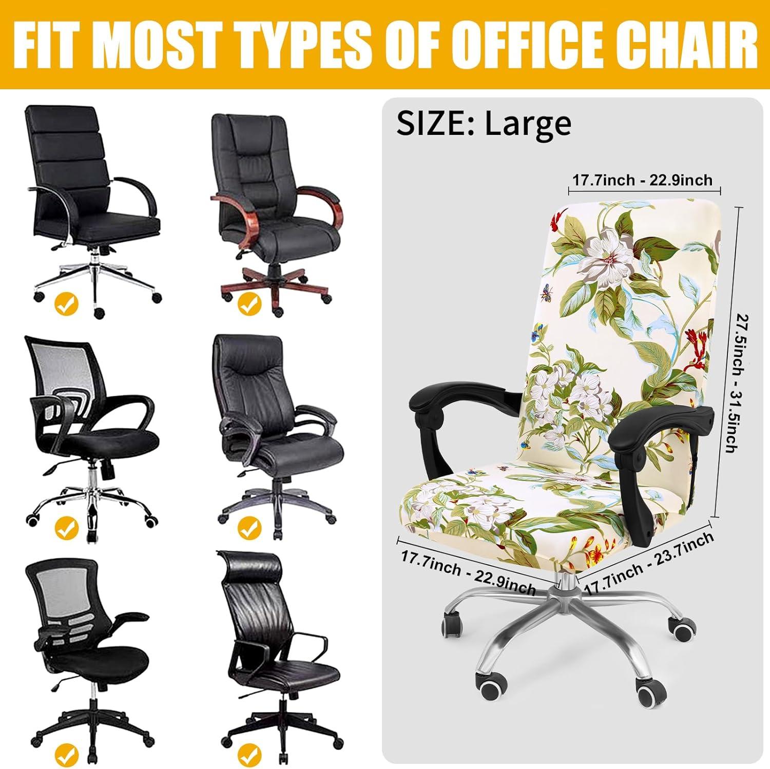 SUITABLE FOR CHAIR SIZE – Printed office chair slipcovers will fit chair back's height: 27.5-31.5 inches, chair back's width: 17.7-22.8 inches, chair seat length: 17.7-22.8 inches, chair seat width: 17.7-23.15 inches. Please refer to the measuring guide in pictures to measure your office chair size.
