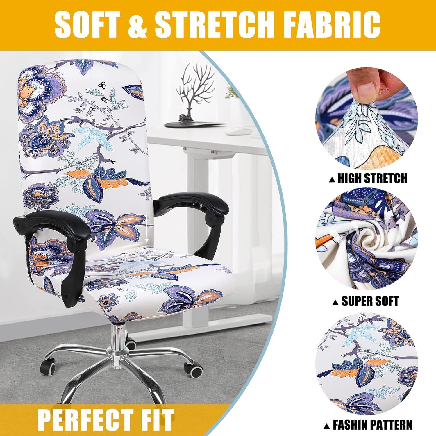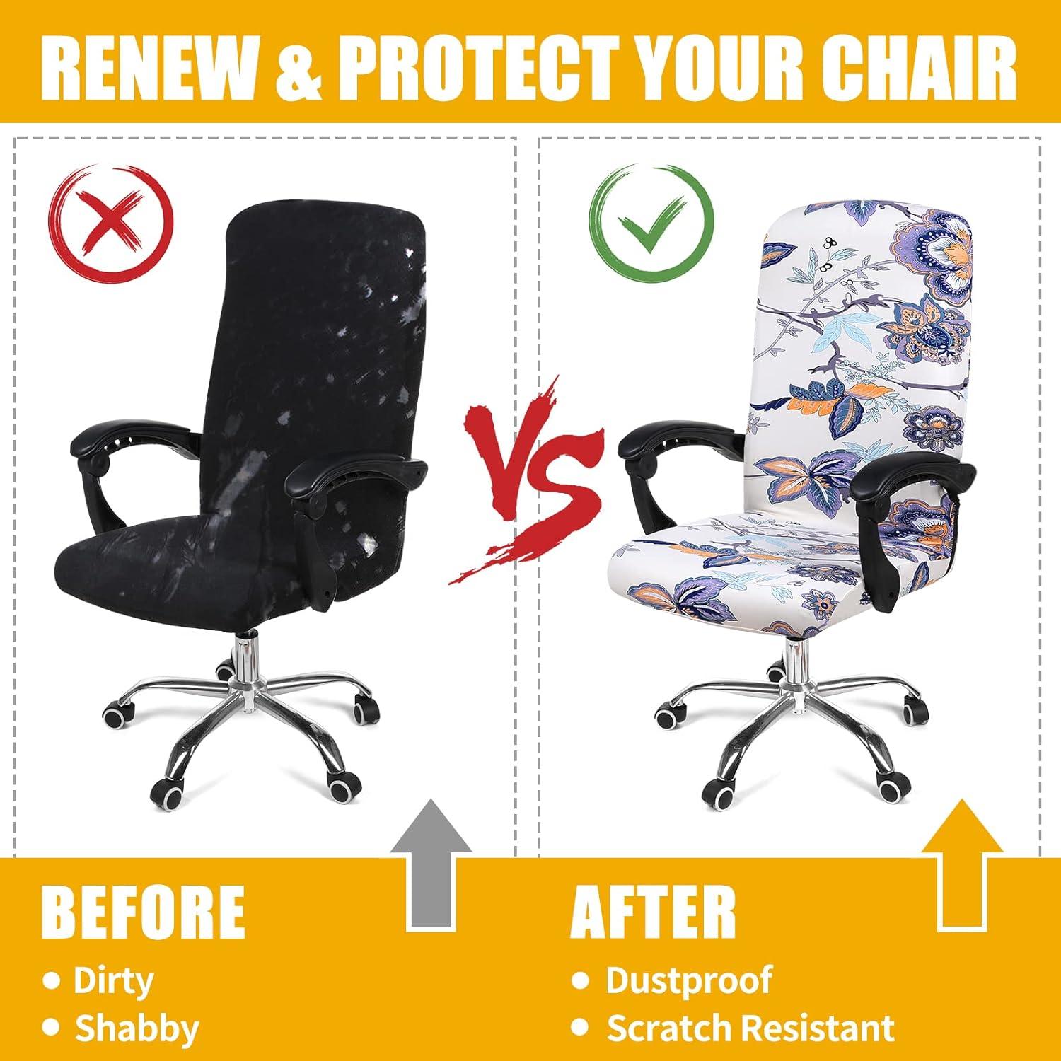 SOFT STRETCH MATERIAL – Smiry office chair covers are made of 95% polyester and 5% spandex fabric, soft and comfortable, sturdy and long lasting. High elastic fit to protect your chair from spills, stains and tearing perfectly.