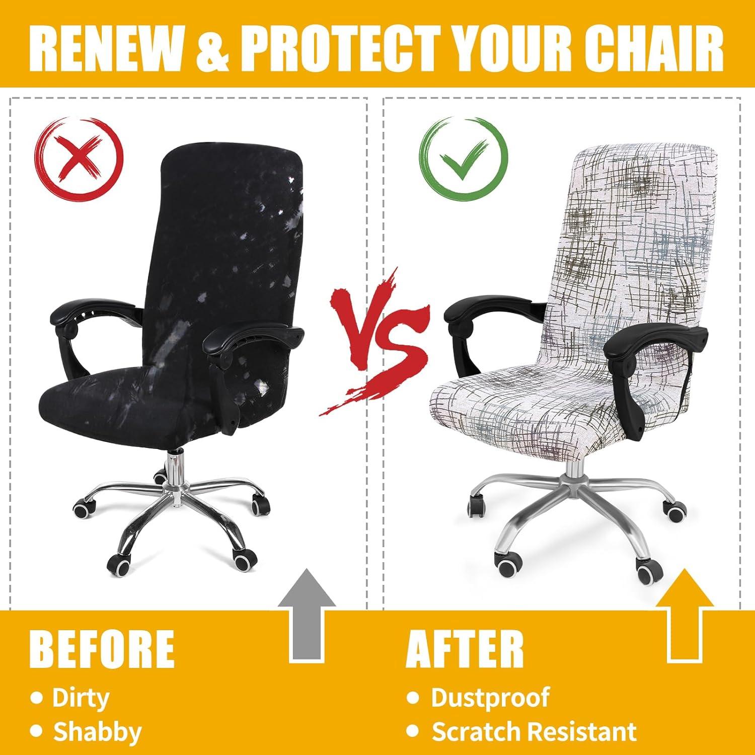 SOFT STRETCH MATERIAL – Smiry office chair covers are made of 95% polyester and 5% spandex fabric, soft and comfortable, sturdy and long lasting. High elastic fit to protect your chair from spills, stains and tearing perfectly.