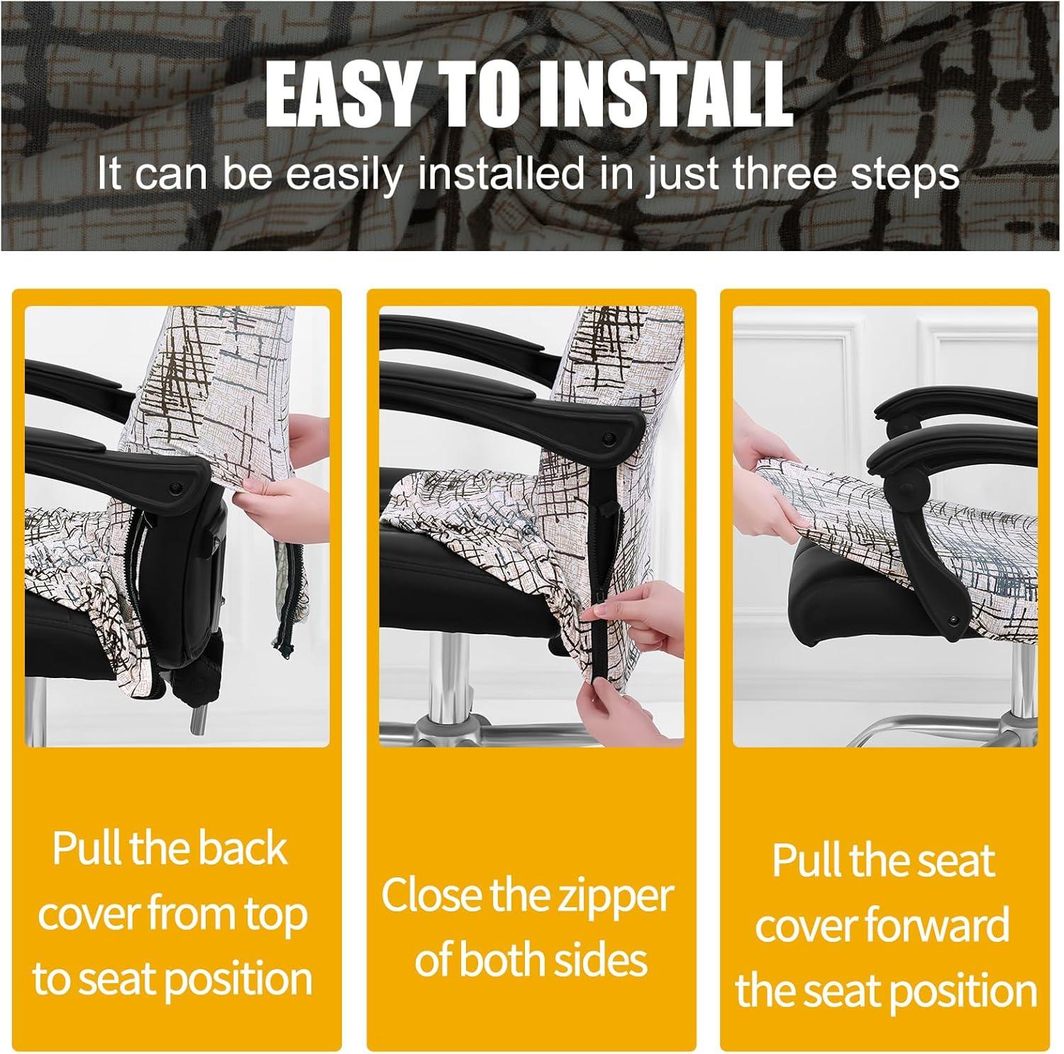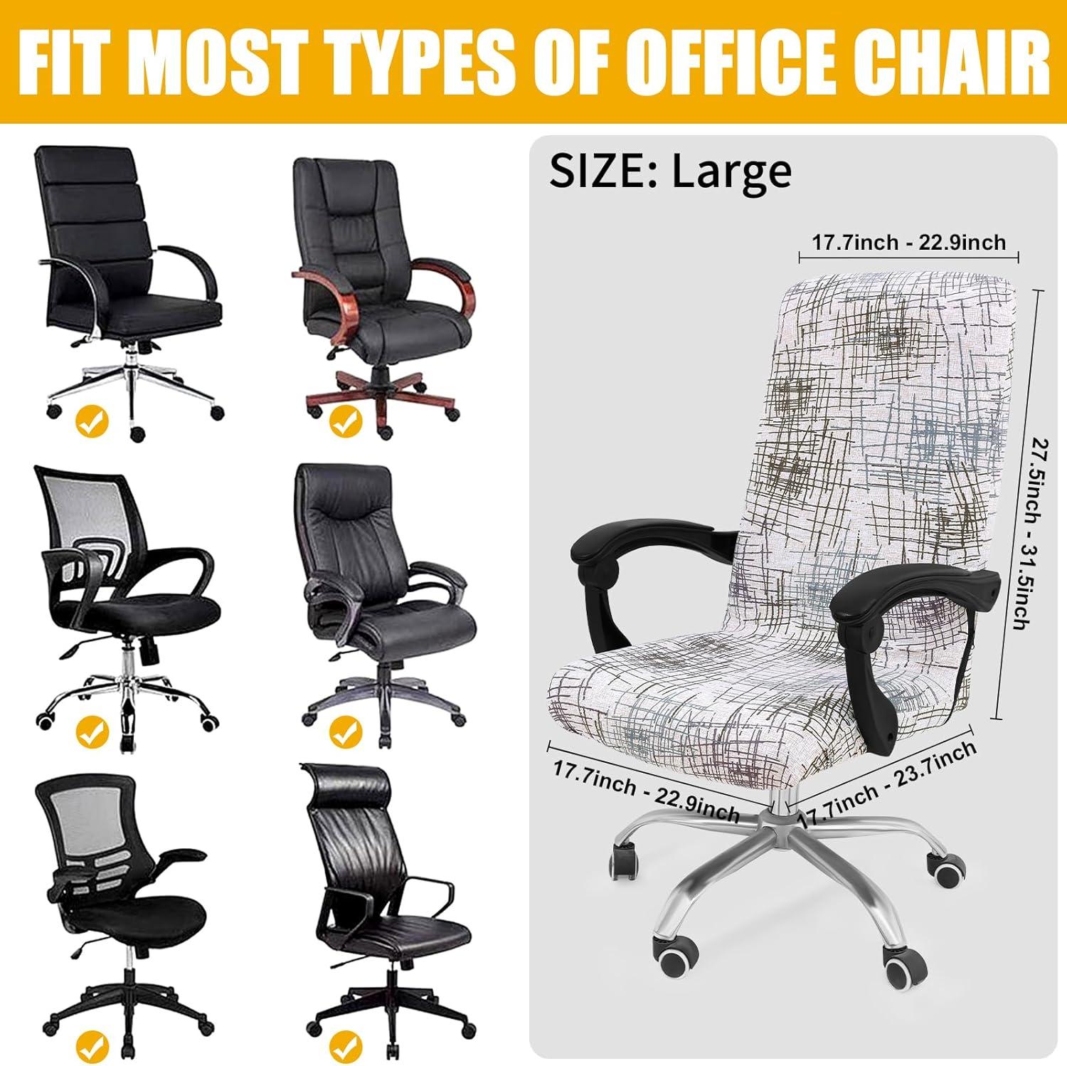 SUITABLE FOR CHAIR SIZE – Printed office chair slipcovers will fit chair back's height: 27.5-31.5 inches, chair back's width: 17.7-22.8 inches, chair seat length: 17.7-22.8 inches, chair seat width: 17.7-23.15 inches. Please refer to the measuring guide in pictures to measure your office chair size.