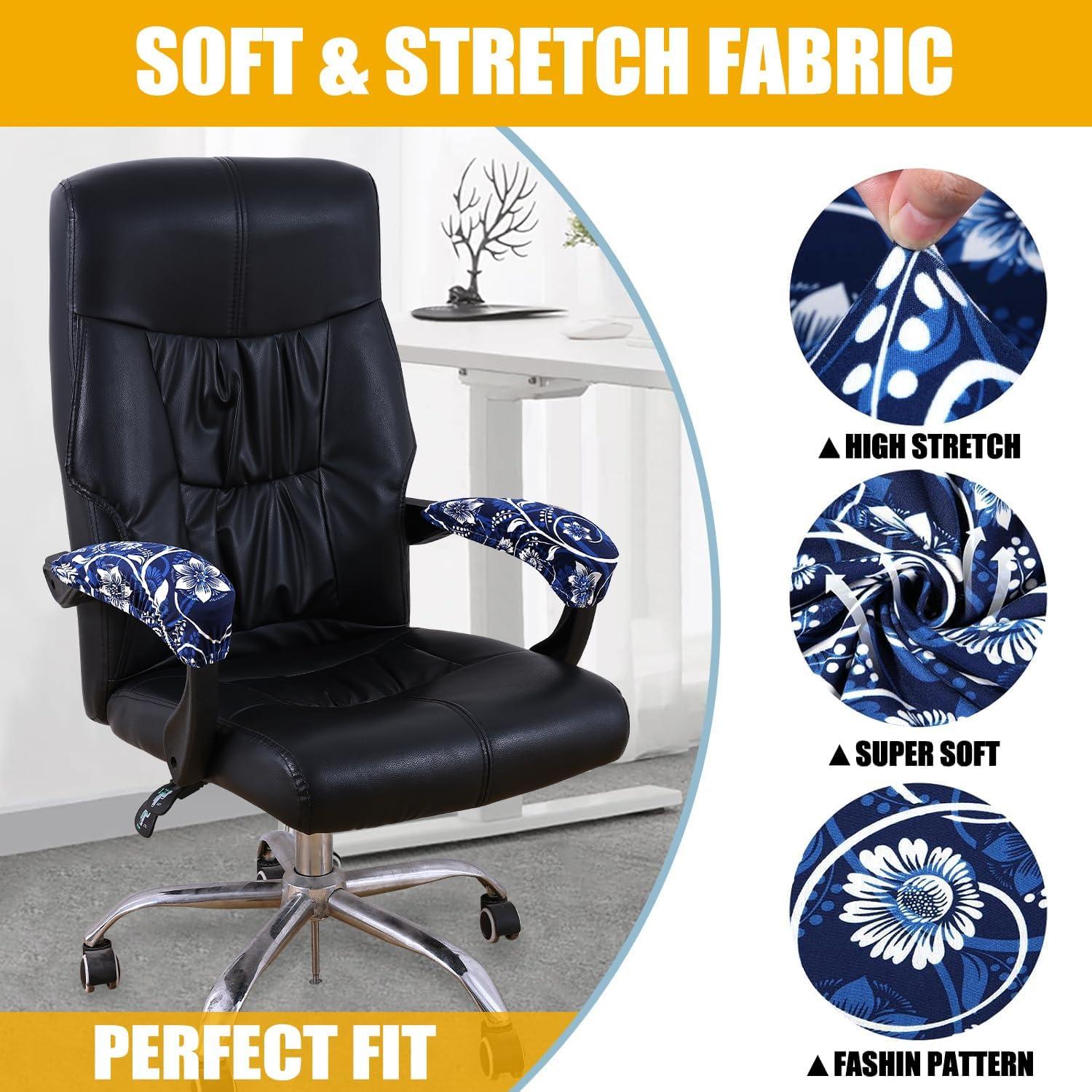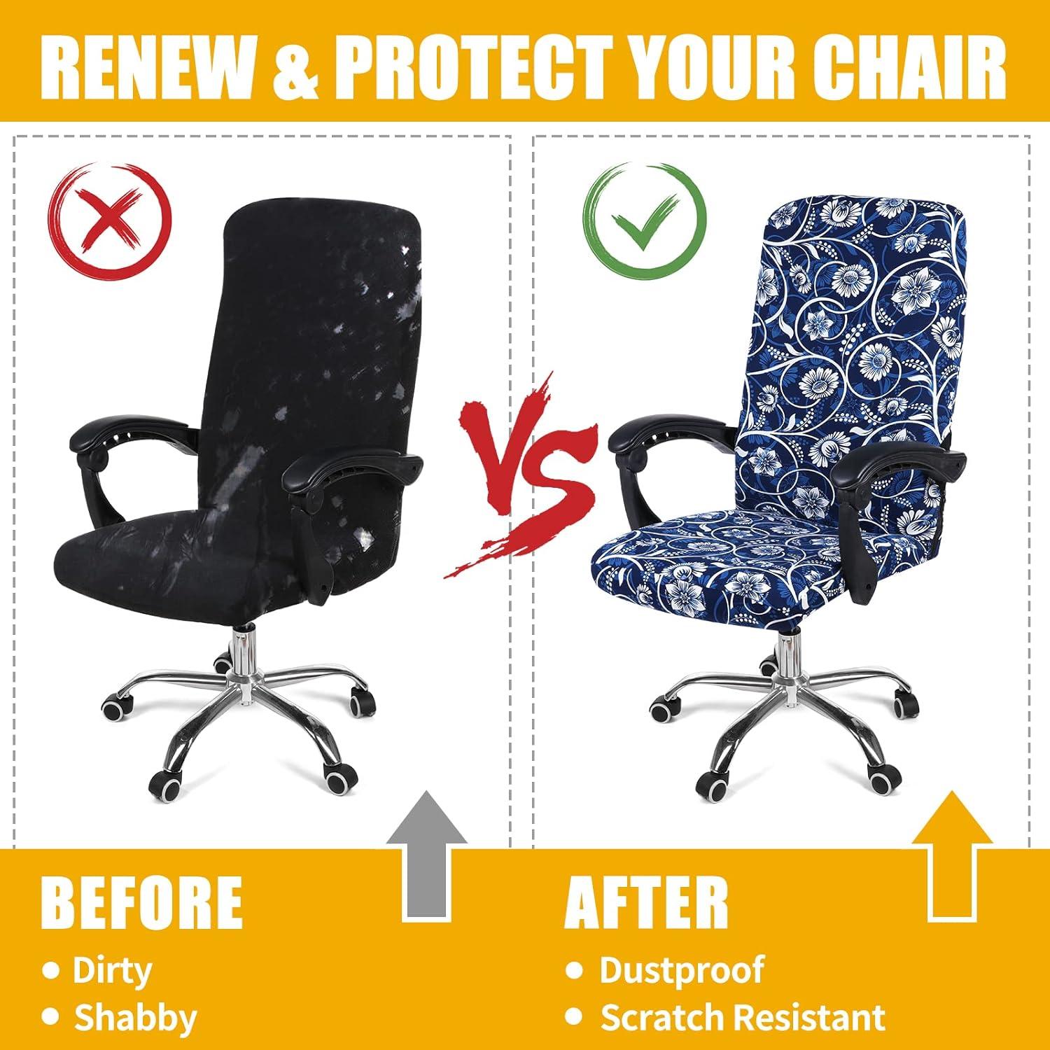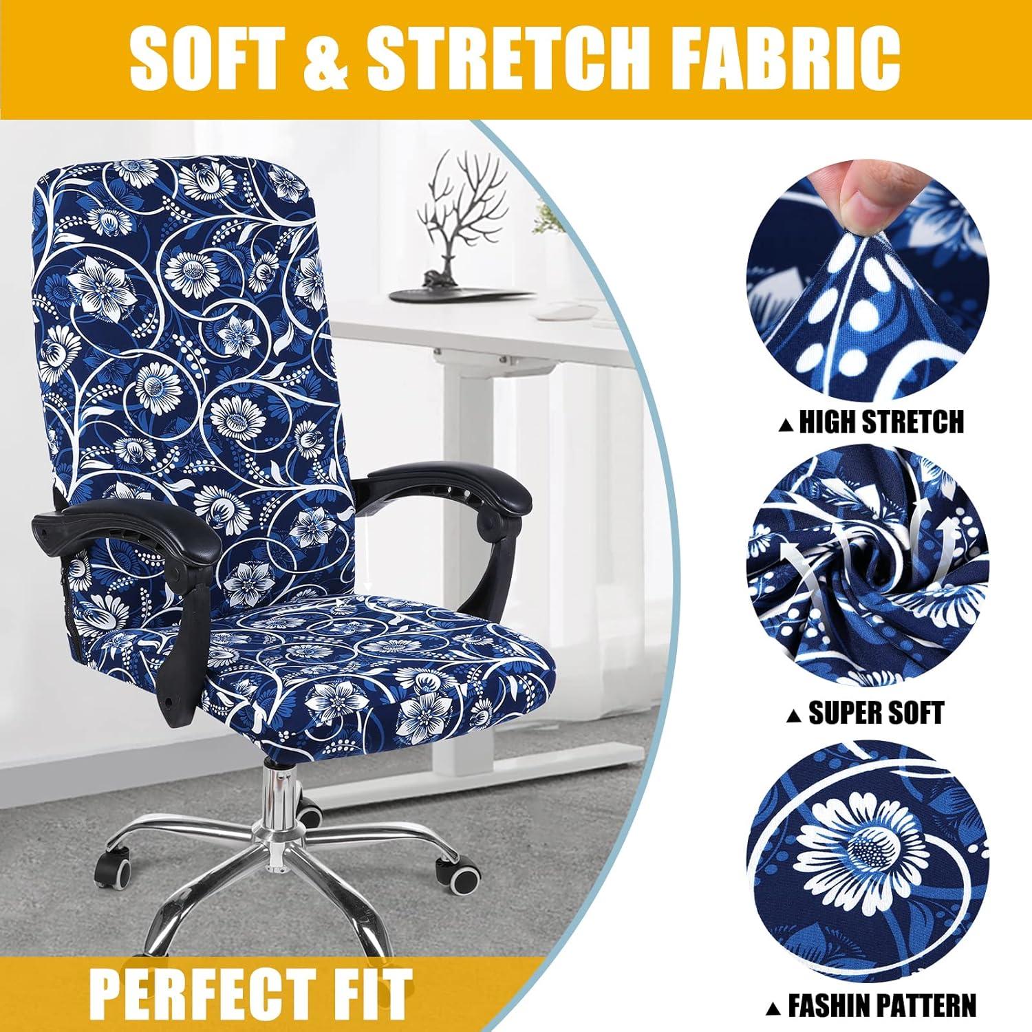 SOFT STRETCH MATERIAL – Smiry office chair covers are made of 95% polyester and 5% spandex fabric, soft and comfortable, sturdy and long lasting. High elastic fit to protect your chair from spills, stains and tearing perfectly.