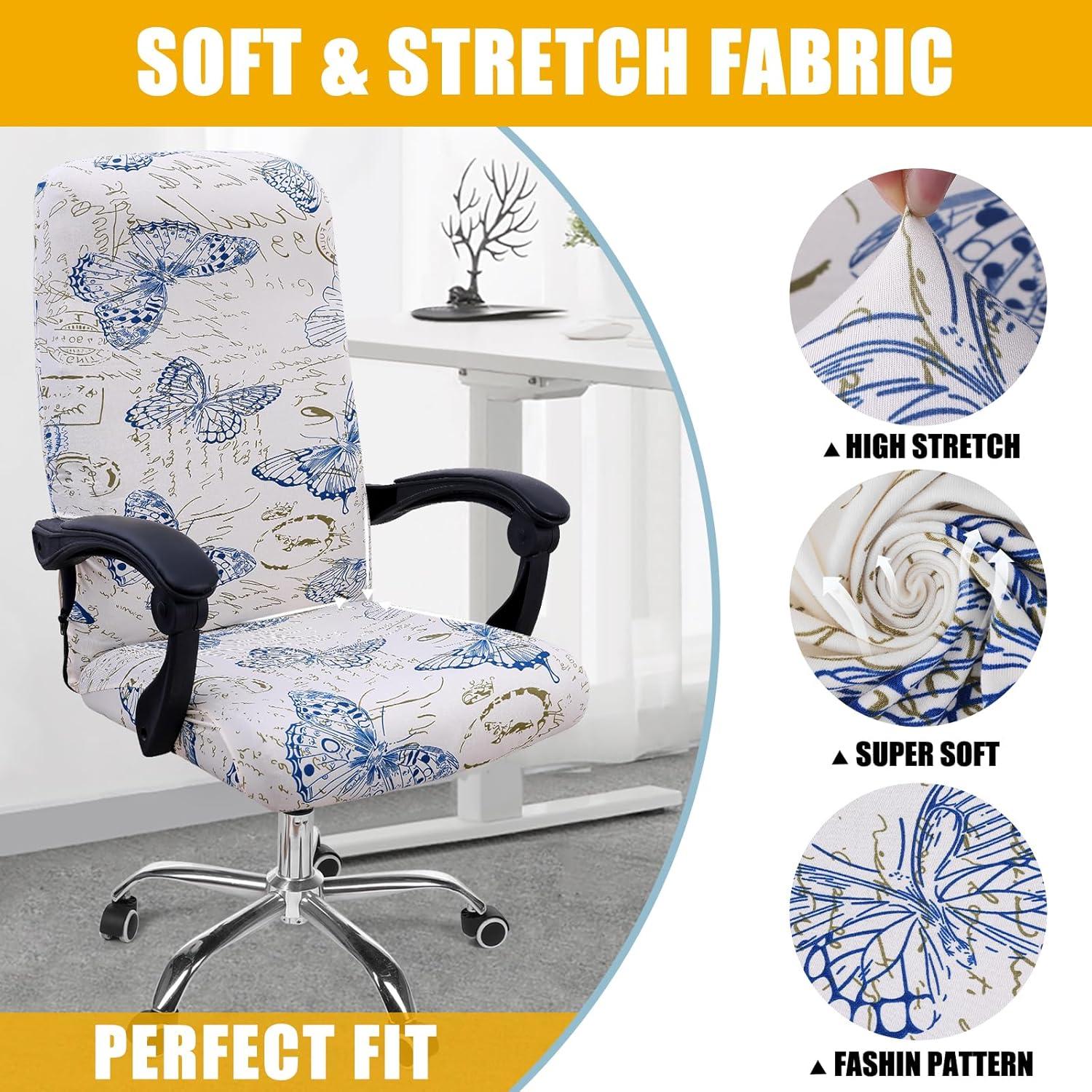 SOFT STRETCH MATERIAL – Smiry office chair covers are made of 95% polyester and 5% spandex fabric, soft and comfortable, sturdy and long lasting. High elastic fit to protect your chair from spills, stains and tearing perfectly.
