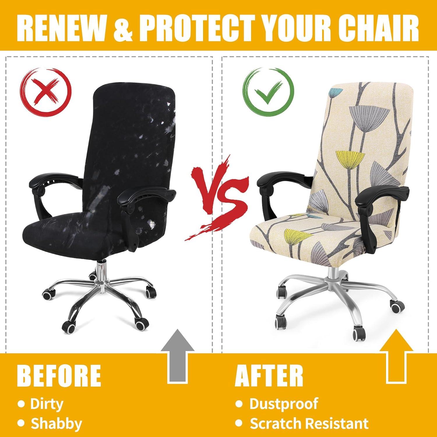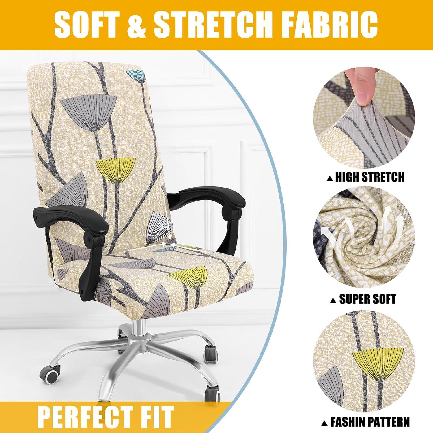 SOFT STRETCH MATERIAL – Smiry office chair covers are made of 95% polyester and 5% spandex fabric, soft and comfortable, sturdy and long lasting. High elastic fit to protect your chair from spills, stains and tearing perfectly.