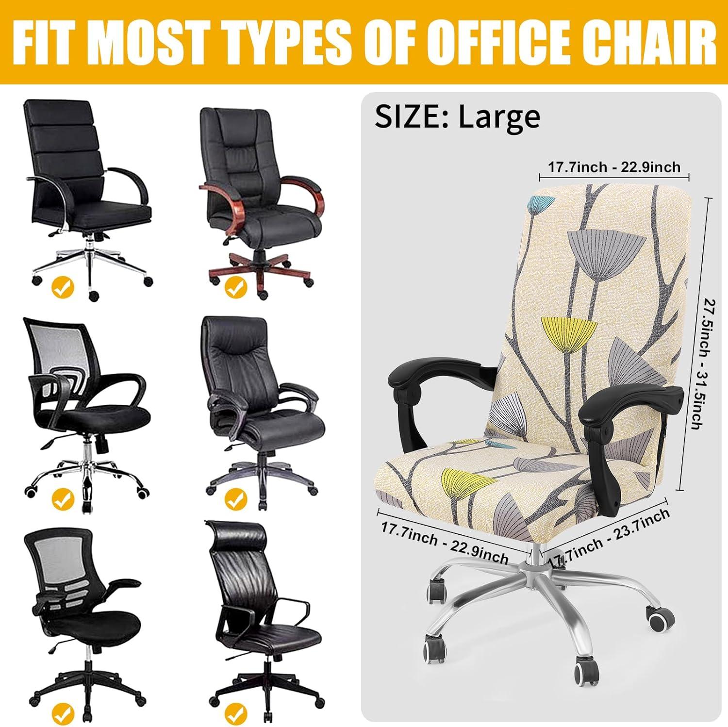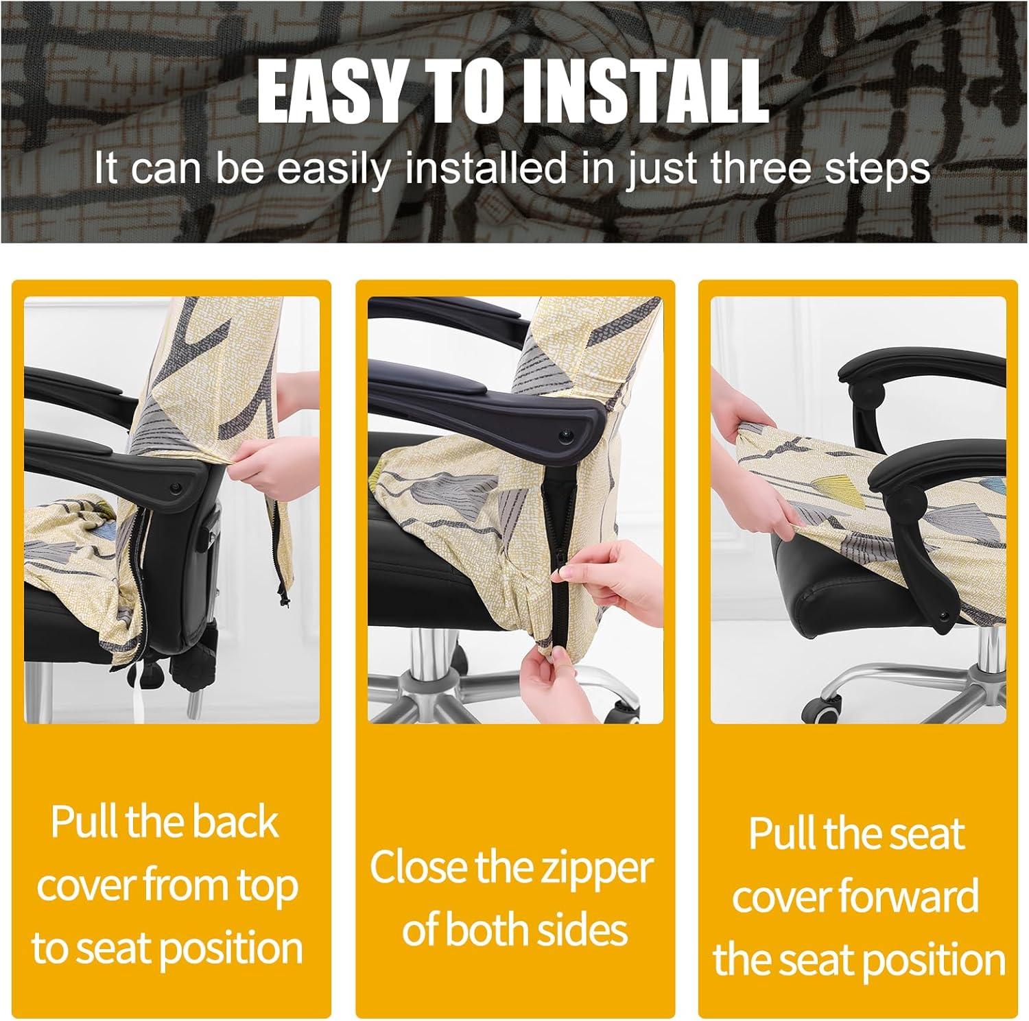 SUITABLE FOR CHAIR SIZE – Printed office chair slipcovers will fit chair back's height: 27.5-31.5 inches, chair back's width: 17.7-22.8 inches, chair seat length: 17.7-22.8 inches, chair seat width: 17.7-23.15 inches. Please refer to the measuring guide in pictures to measure your office chair size.