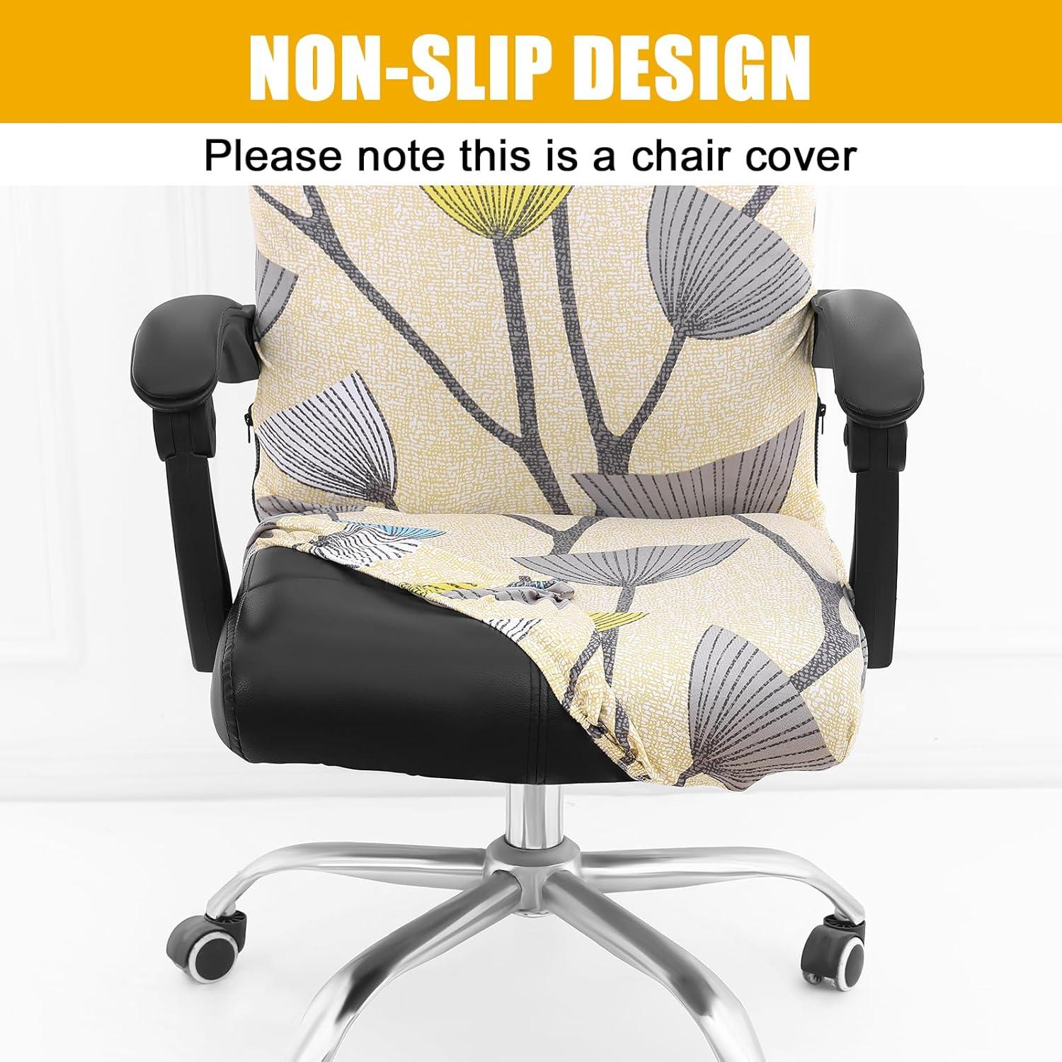imageSmiry Stretch Printed Office Computer Chair Covers Universal Desk Rotating Chair Slipcovers Removable Washable Soft Fit AntiDust Spandex Protector Cover with Zipper NavyYellow and Grey