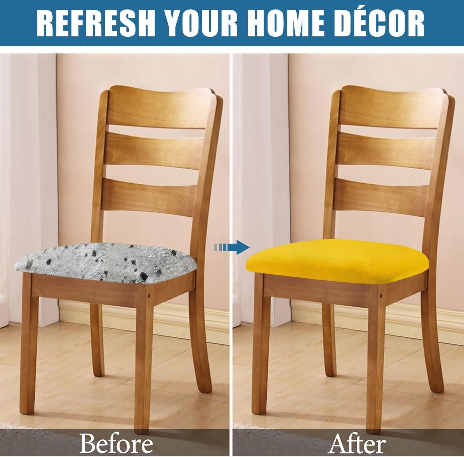 [Widely Use & Care] These kitchen chair covers are perfect decoration for dining room, kitchen, hotel, banquet, etc. These stretch chair covers are great for room decor. Machine washable; Tumble dry low; Iron on low heat