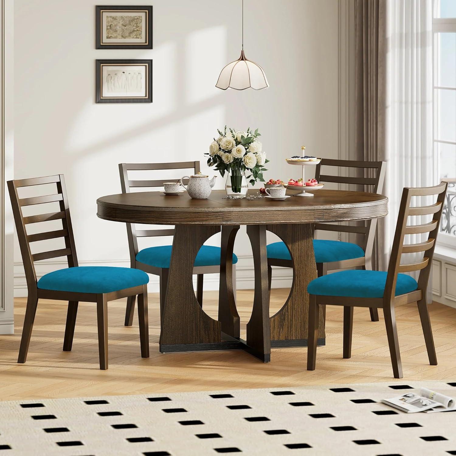 Smiry Velvet Seat Covers for Dining Room Chair Set of 4, Stretch Fit Removable Washable Chair Seat Cushion Protector Slipcovers with Ties, Teal(Teal)