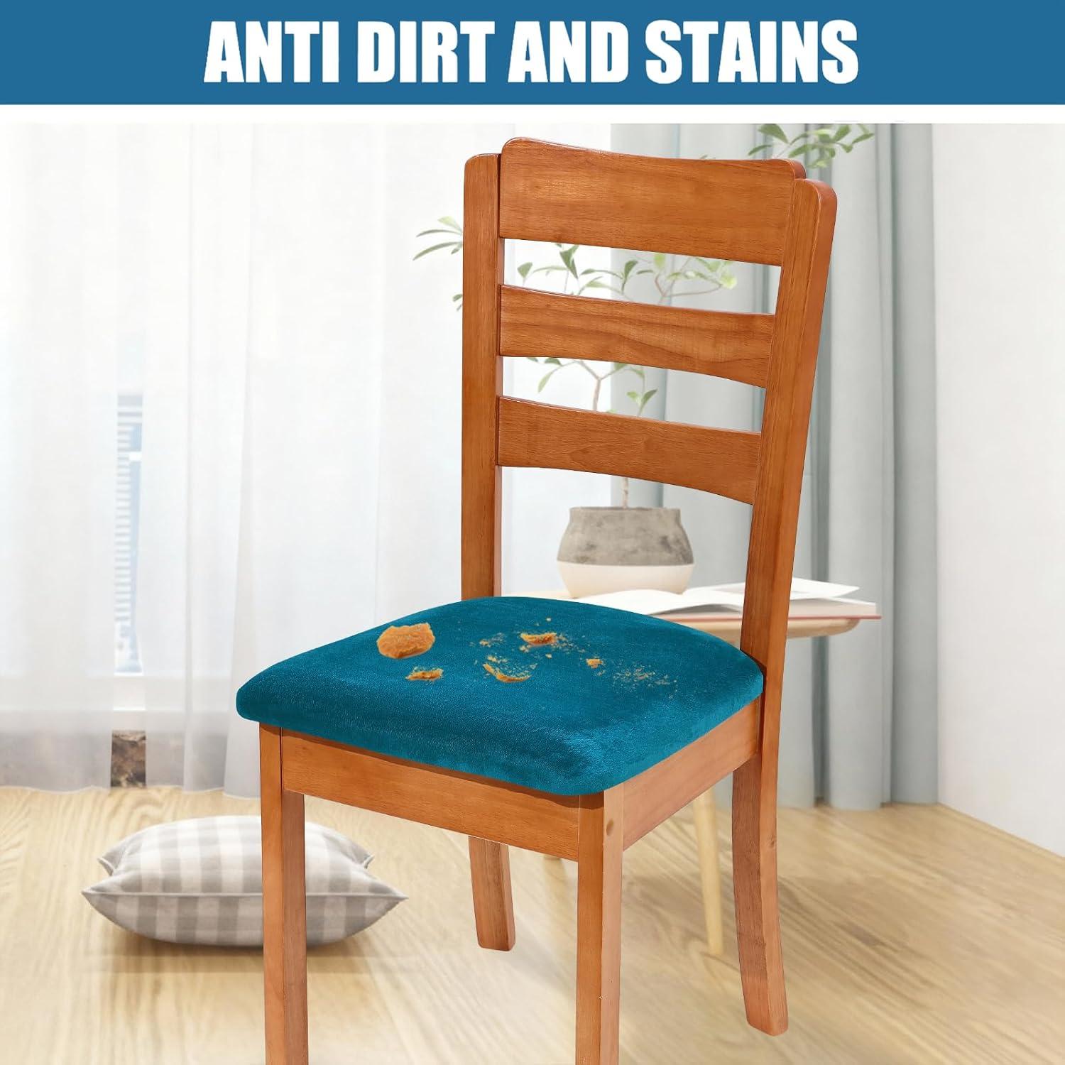 Smiry Velvet Seat Covers for Dining Room Chair Set of 4, Stretch Fit Removable Washable Chair Seat Cushion Protector Slipcovers with Ties, Teal(White)