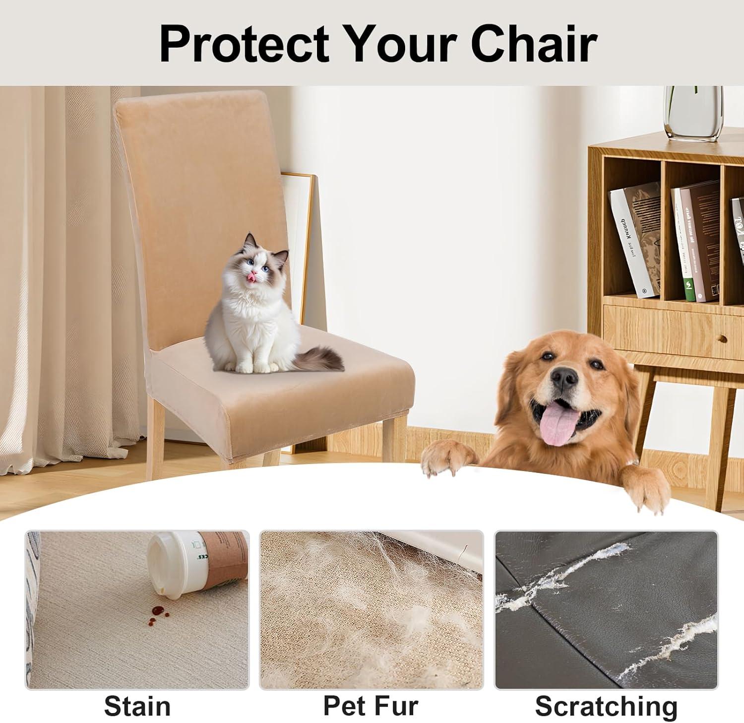 [Chair Protector] Velvet chair covers for dining chairs dress up and create a new look to your old dining room chairs. Protect furniture chair from stain, dust, daily wears and scratch. Suitable for families with kids and pets