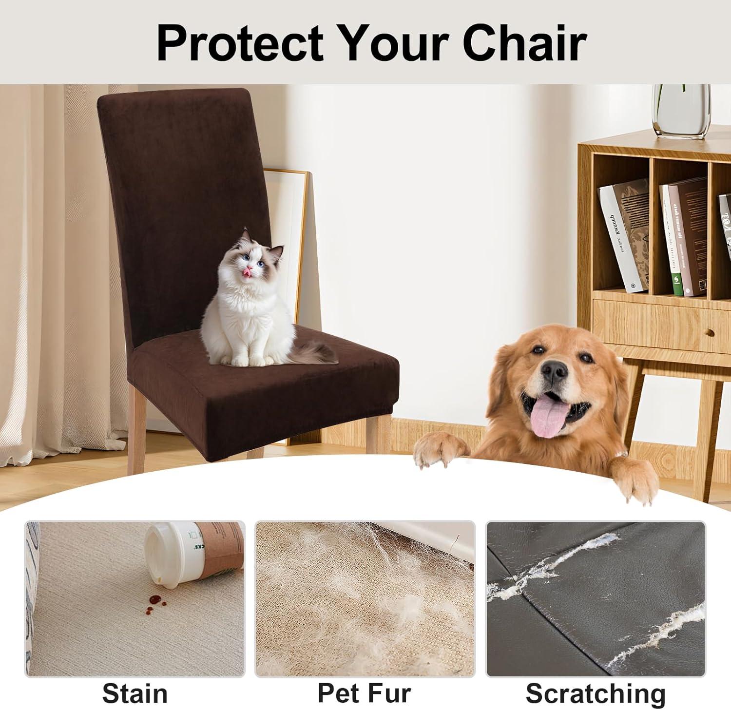 [Chair Protector] Velvet chair covers for dining chairs dress up and create a new look to your old dining room chairs. Protect furniture chair from stain, dust, daily wears and scratch. Suitable for families with kids and pets