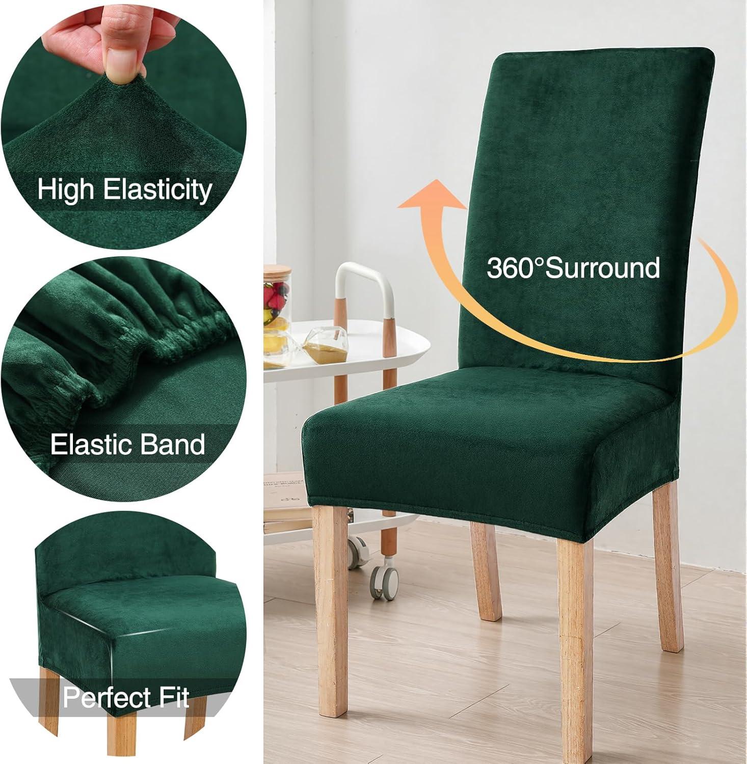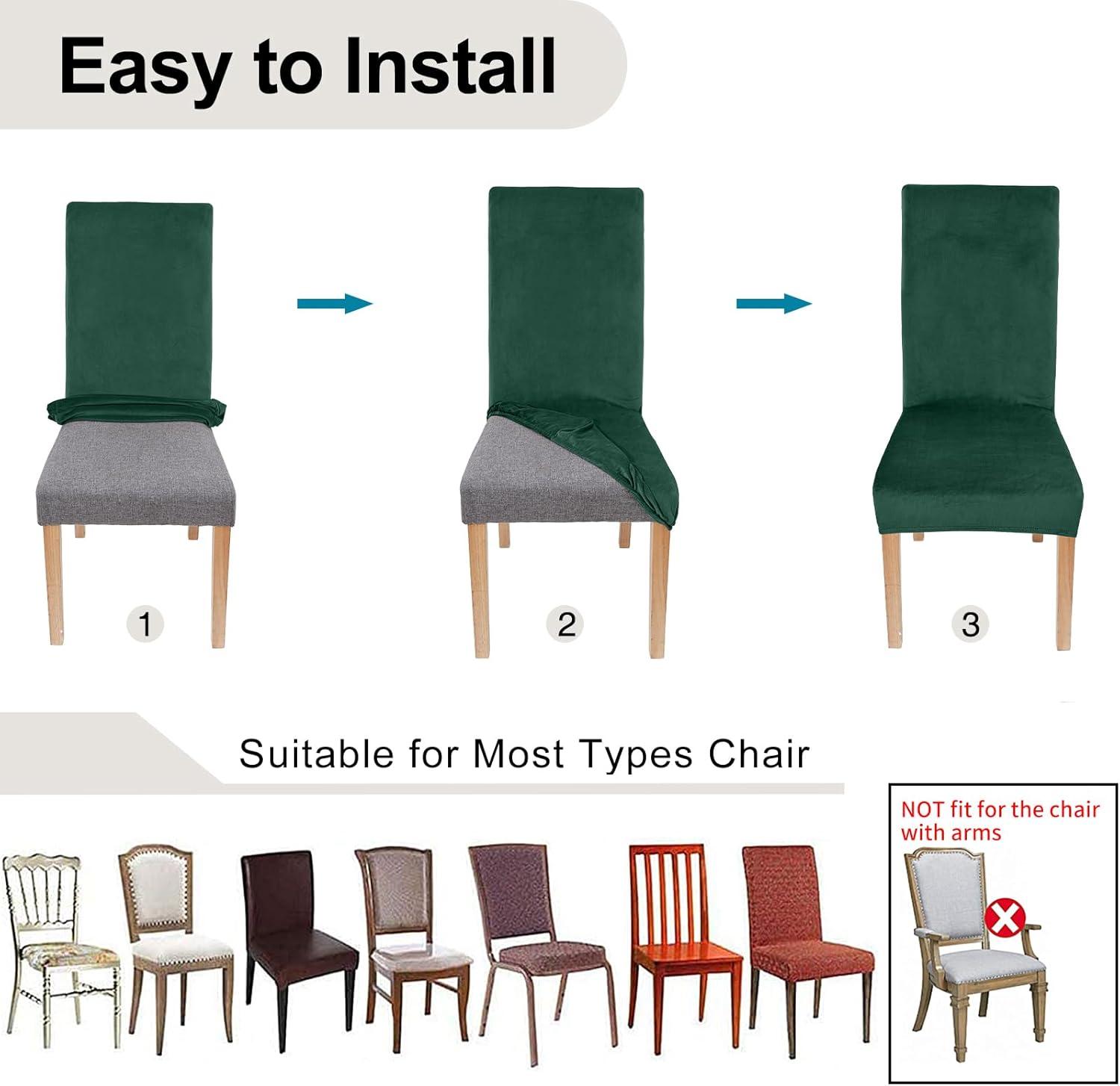 [Perfect Fit] Stretchable thick material velvet chair cover with sewn-in elastic hem ensures the dining chair covers fit securely on your chair, very easy to put on and take off. It covers the chair from the backrest to the seat, fit perfectly on most armless chairs and stay up