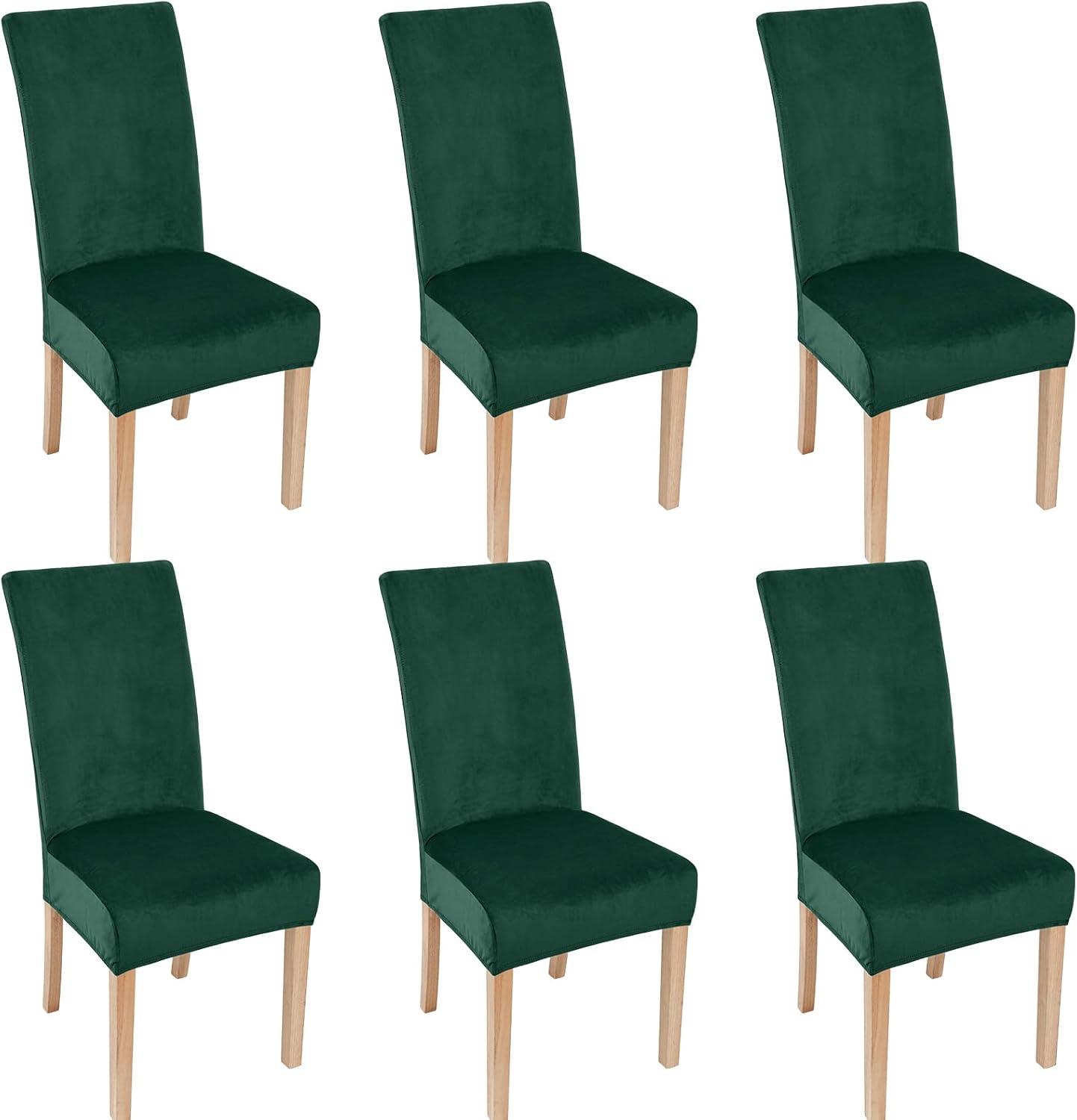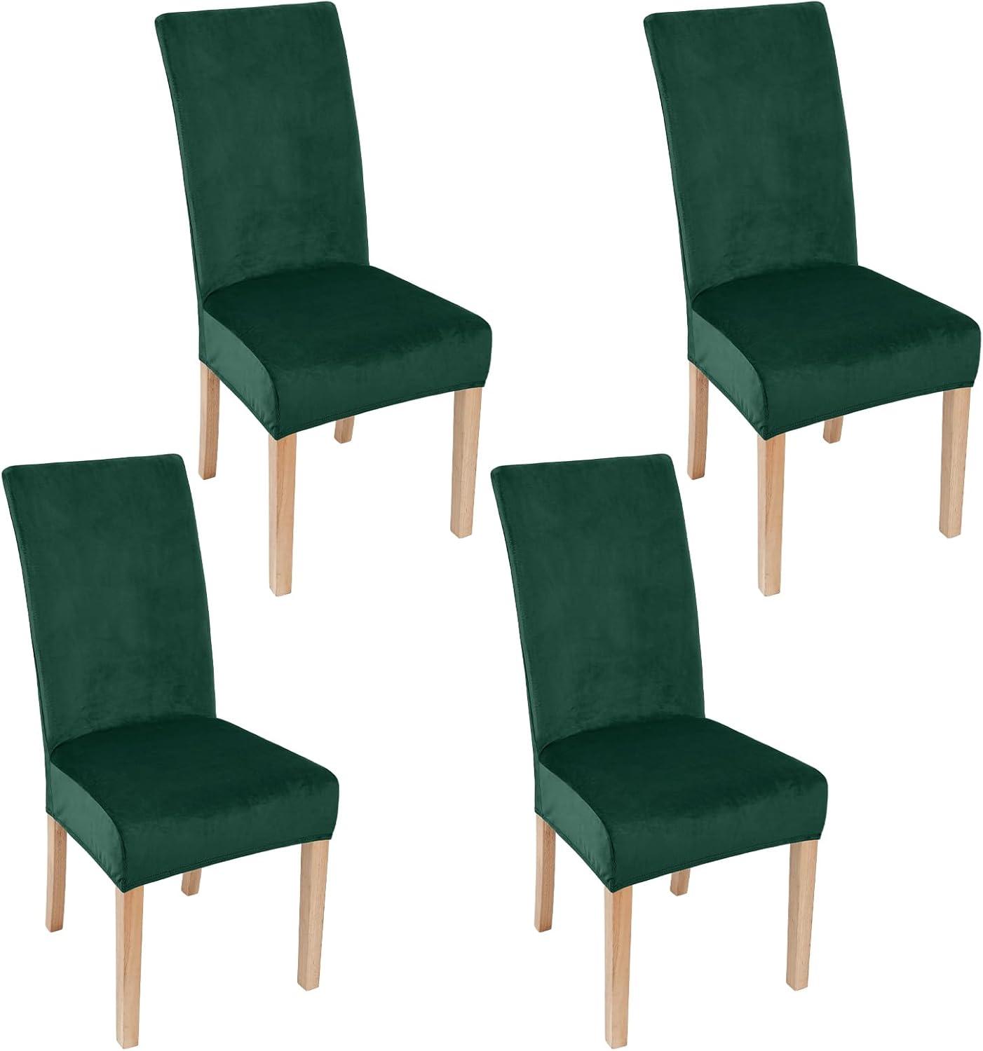 Smiry Velvet Stretch Chair Covers for Dining Room Set of 4, Soft Fit Removable Washable Kitchen Parsons Chair Slipcover Protector, Khaki(Dark Green)