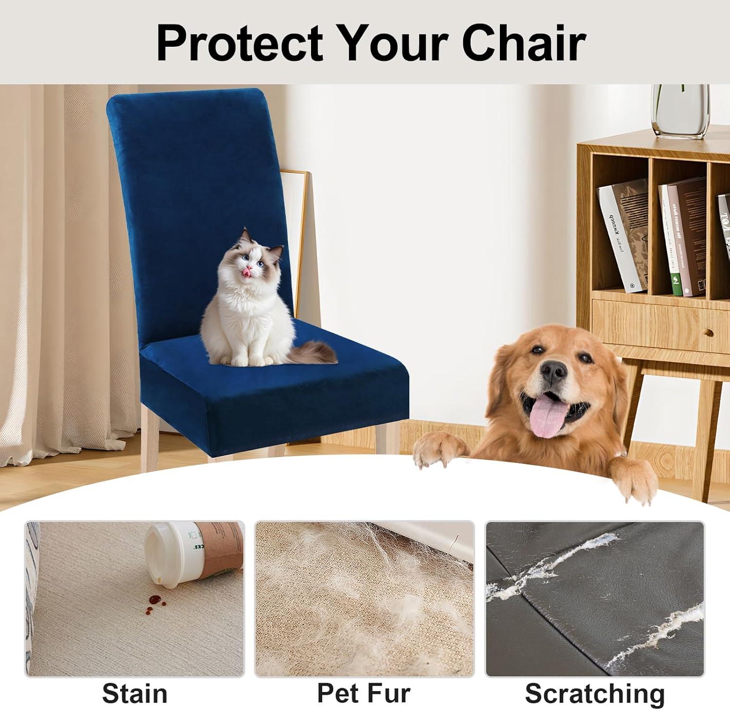 [Chair Protector] Velvet chair covers for dining chairs dress up and create a new look to your old dining room chairs. Protect furniture chair from stain, dust, daily wears and scratch. Suitable for families with kids and pets