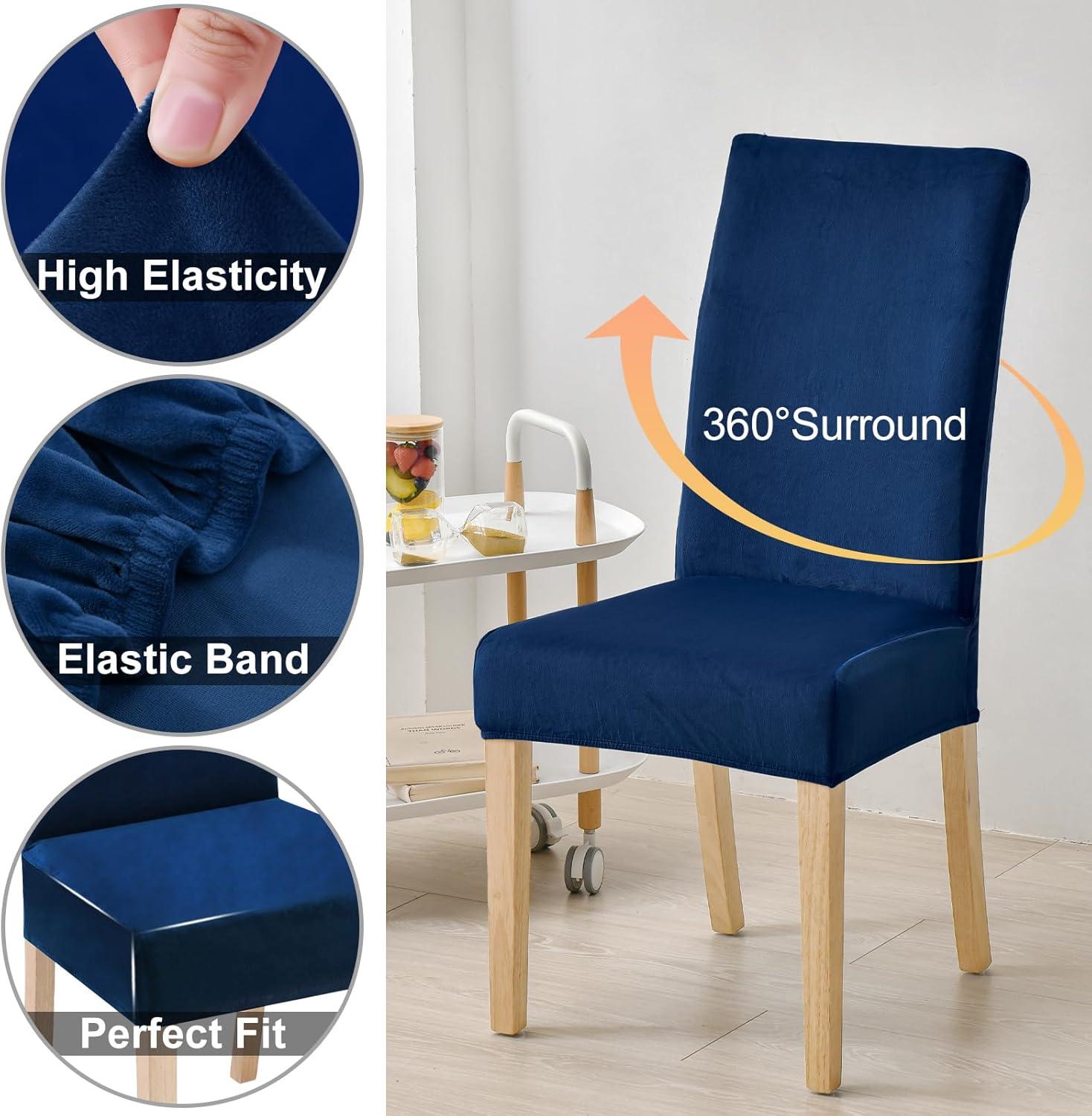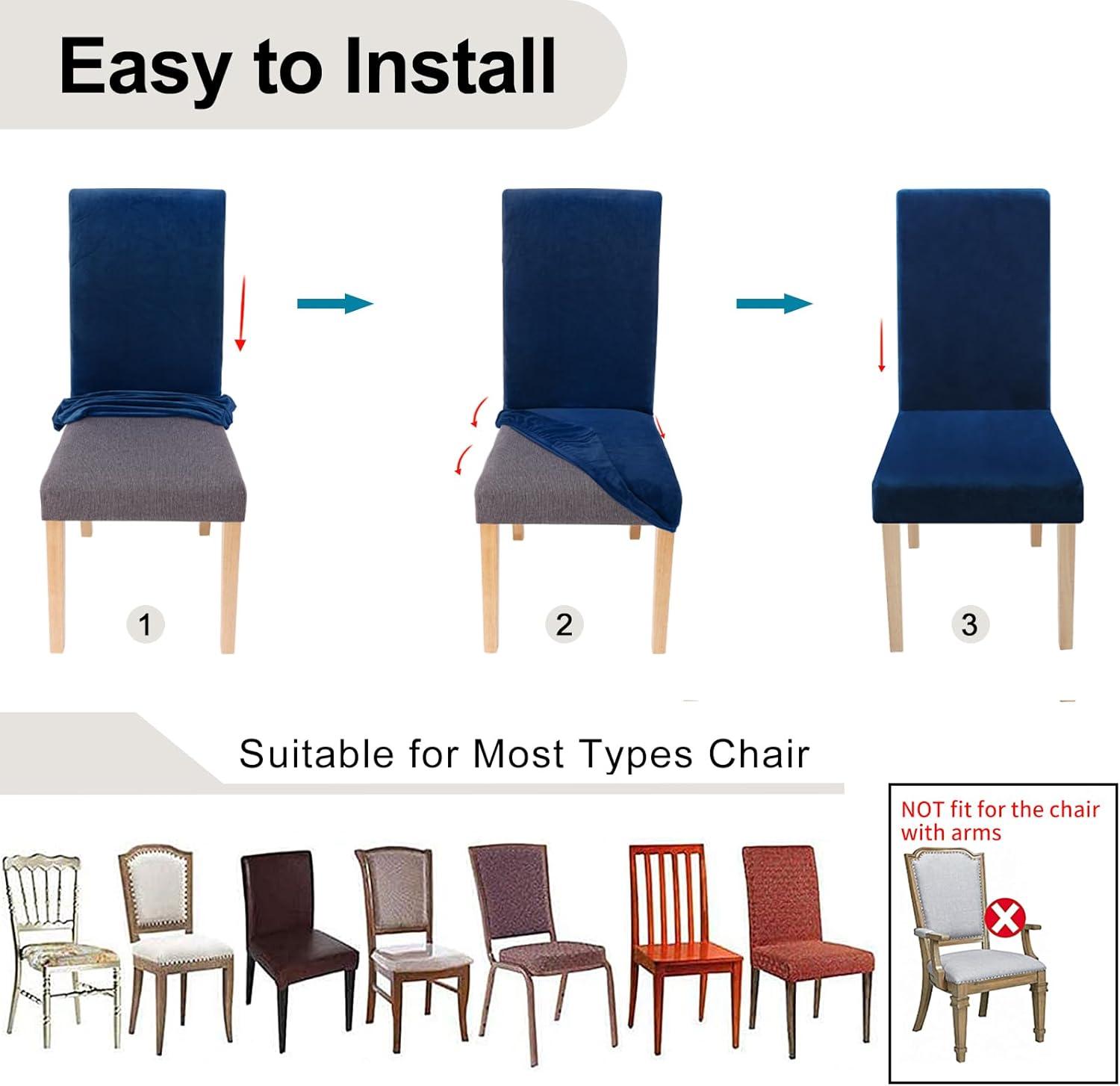 [Perfect Fit] Stretchable thick material velvet chair cover with sewn-in elastic hem ensures the dining chair covers fit securely on your chair, very easy to put on and take off. It covers the chair from the backrest to the seat, fit perfectly on most armless chairs and stay up