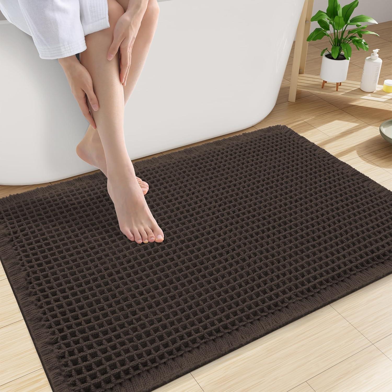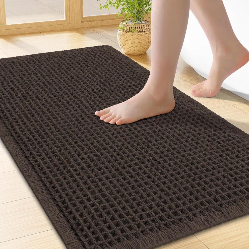 Smiry Waffle Bath Mat 30x20, Extra Soft Absorbent Bathroom Rugs, Non Slip Machine Washable Quick Dry Bath Rugs for Bathroom Floor, Tub, Shower, Home Decor Accessories, Brown(Chocolate)