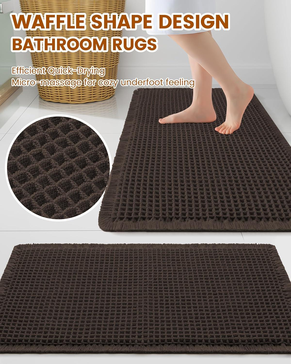 Smiry Waffle Bath Mat 30×20, Extra Soft Absorbent Bathroom Rugs, Non Slip Machine Washable Quick Dry Bath Rugs for Bathroom Floor, Tub, Shower, Home Decor Accessories, Brown(Chocolate)