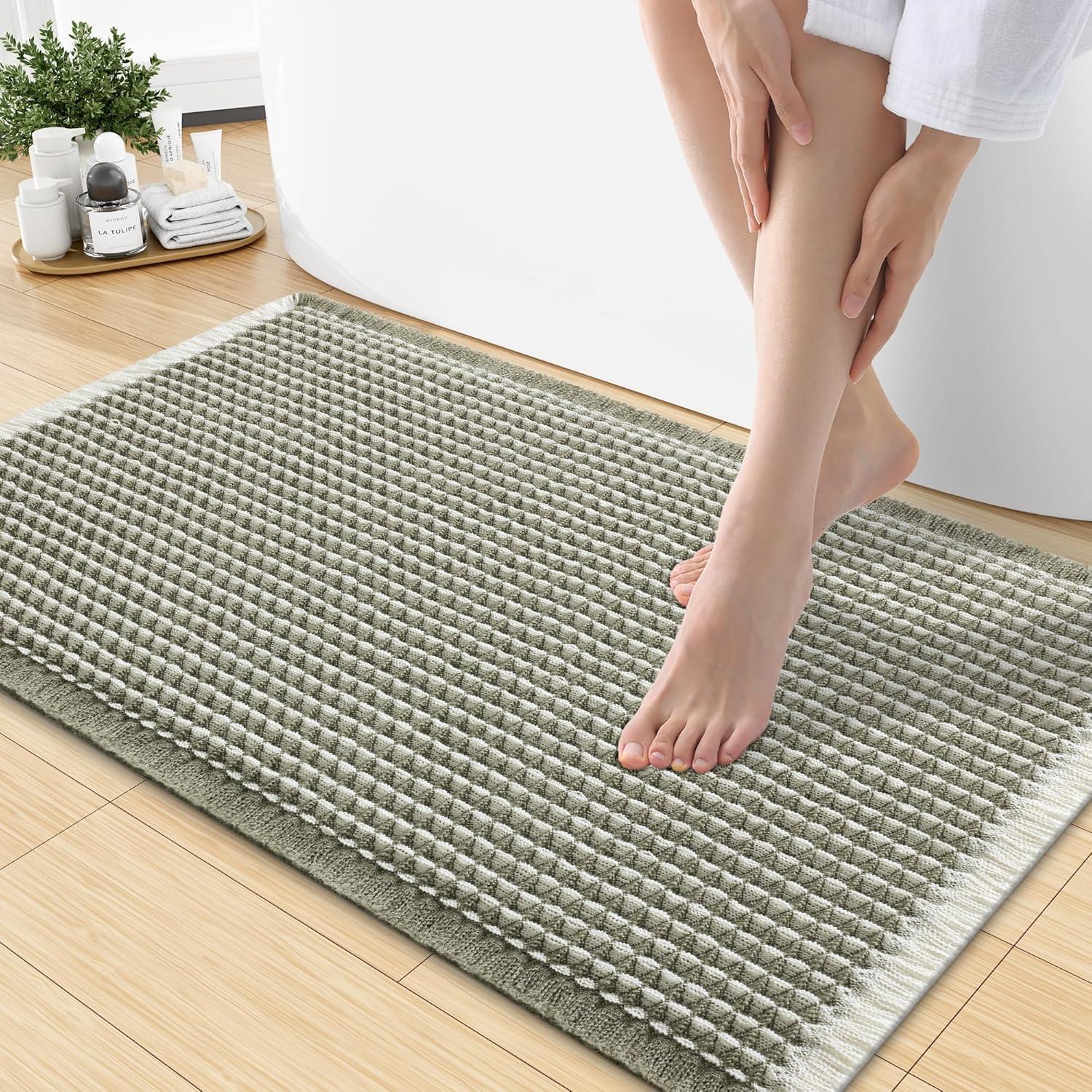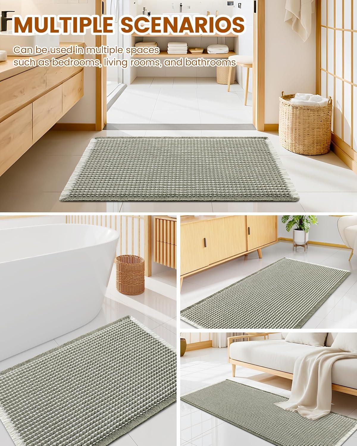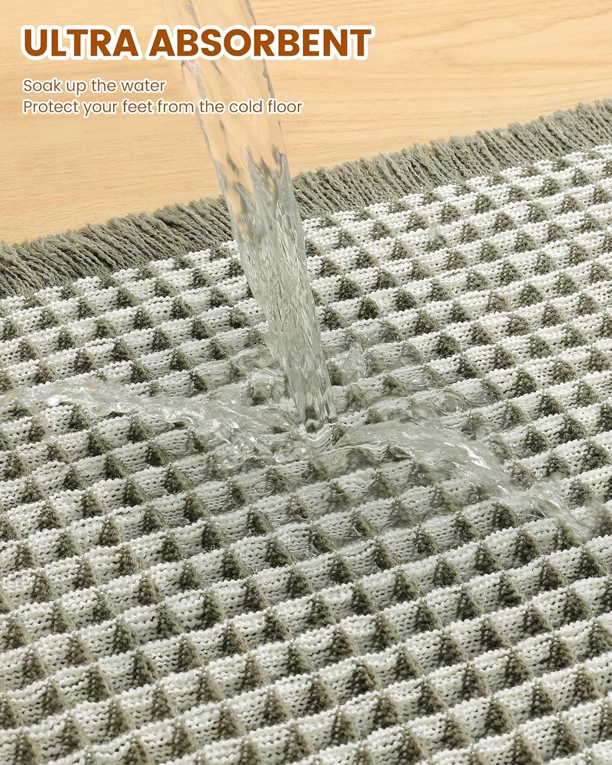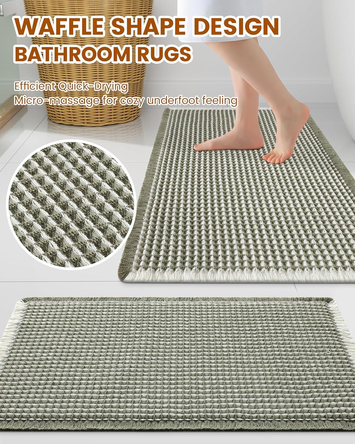 [Soft & Comfortable] The moment you step on the bathroom rugs, the solid thickness of the high-weight material is instantly felt—no flimsy lightness, only steady and comfortable support. The three-dimensional waffle texture fits naturally with every movement of your feet, gently wrapping every inch of your soles, making every step both stable and utterly cozy.