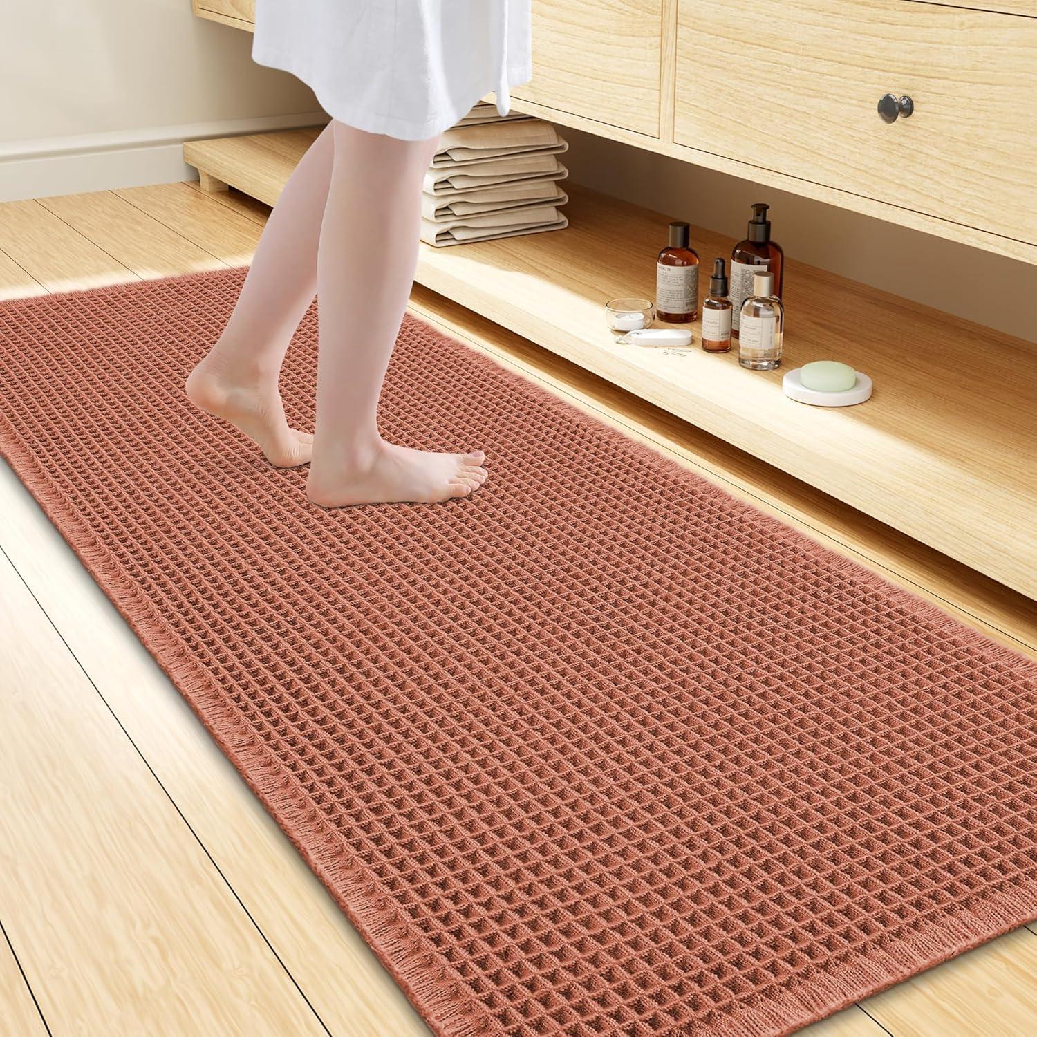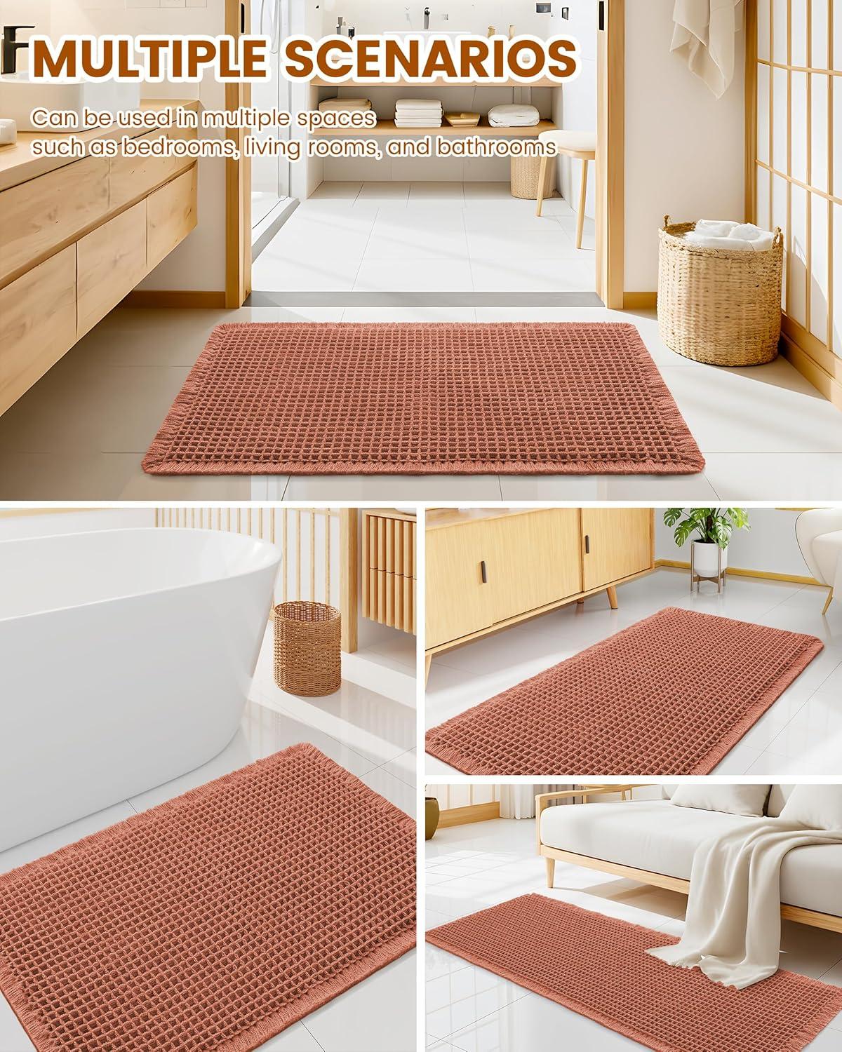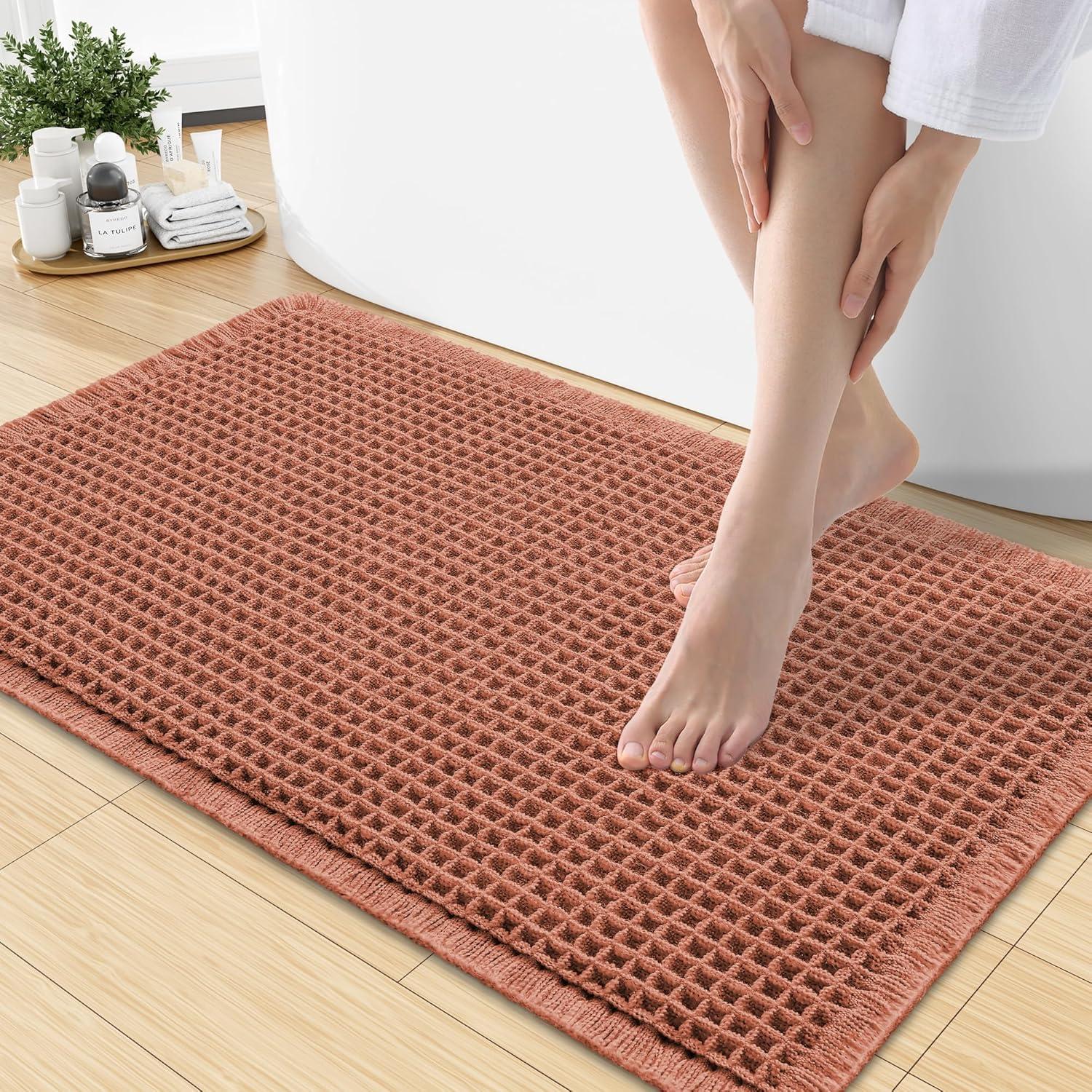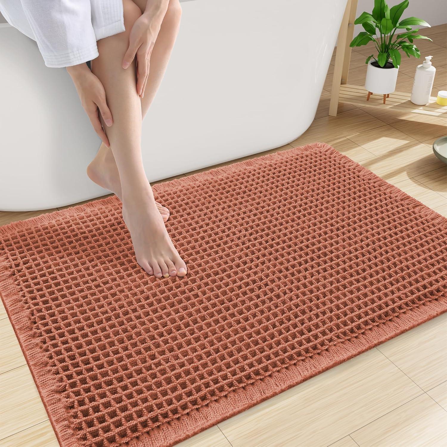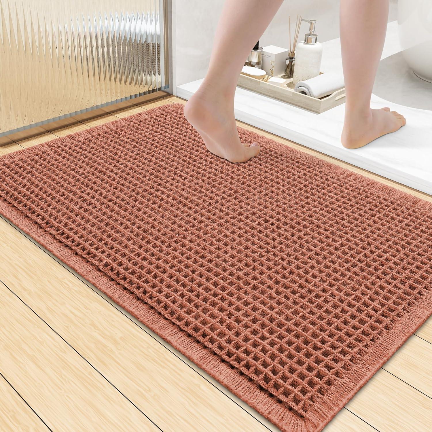 Smiry Waffle Bath Mat 30x20, Extra Soft Absorbent Bathroom Rugs, Non Slip Machine Washable Quick Dry Bath Rugs for Bathroom Floor, Tub, Shower, Home Decor Accessories, Brown(Orange)