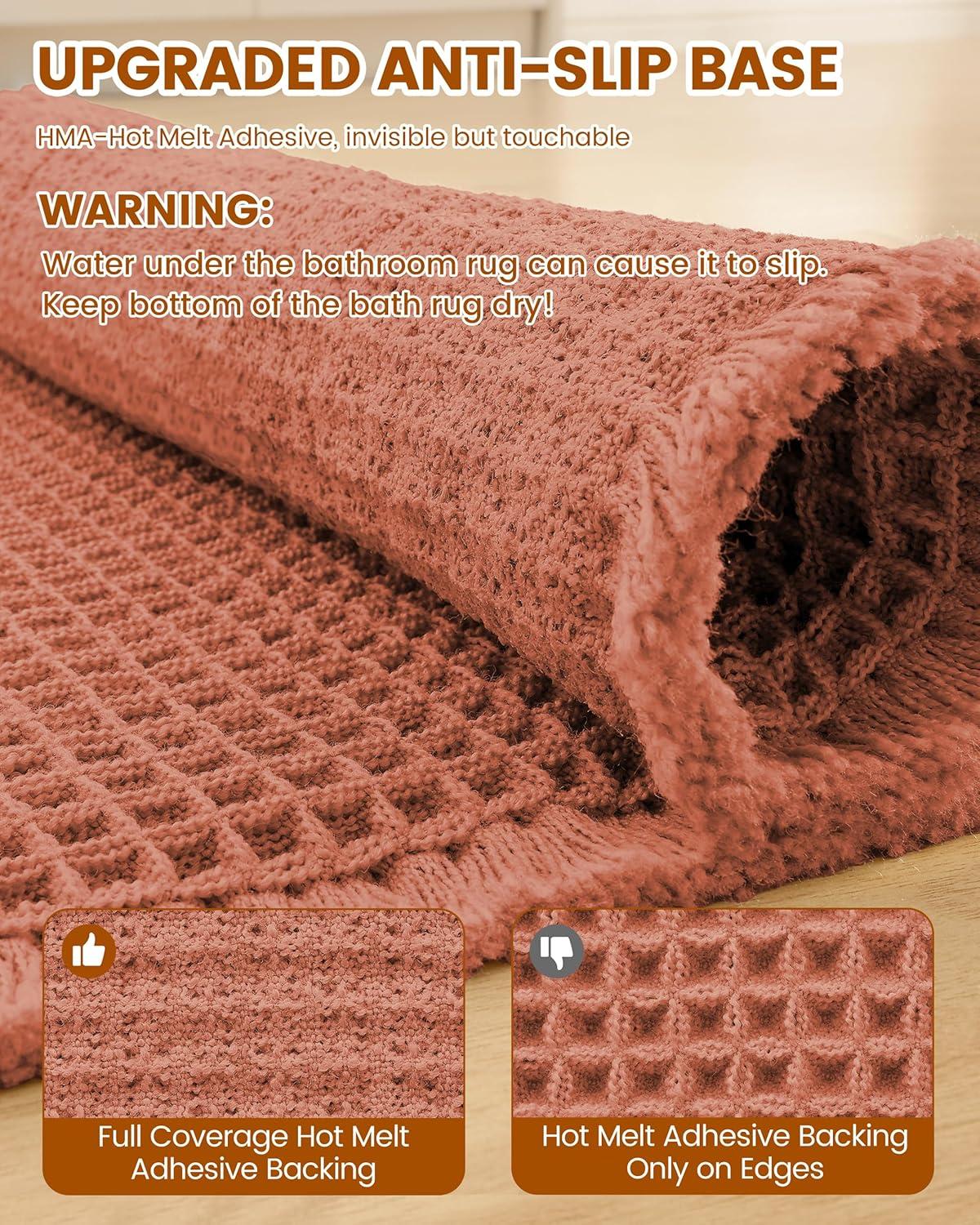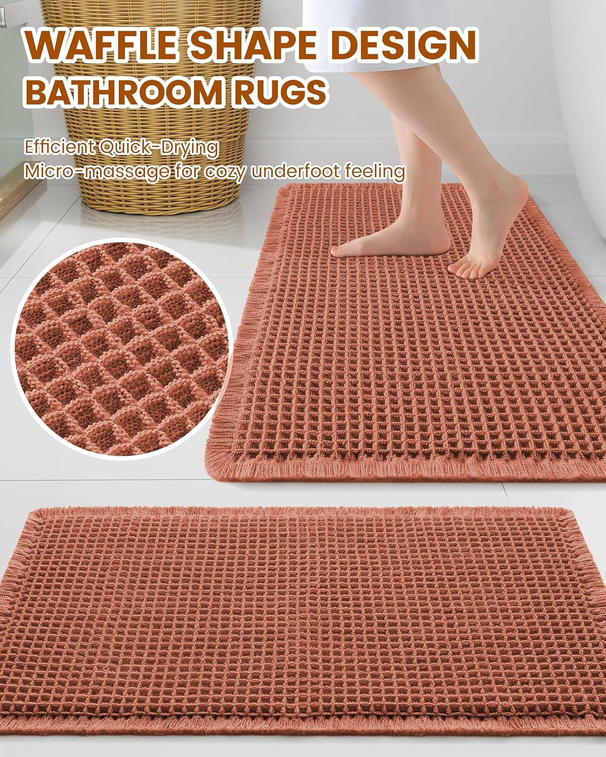Smiry Waffle Bath Mat 30×20, Extra Soft Absorbent Bathroom Rugs, Non Slip Machine Washable Quick Dry Bath Rugs for Bathroom Floor, Tub, Shower, Home Decor Accessories, Brown(Orange)