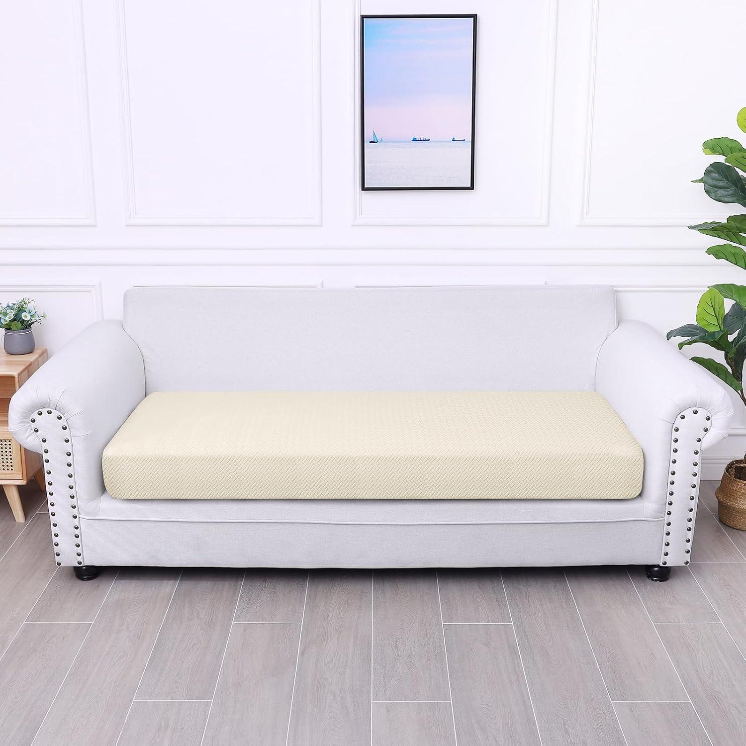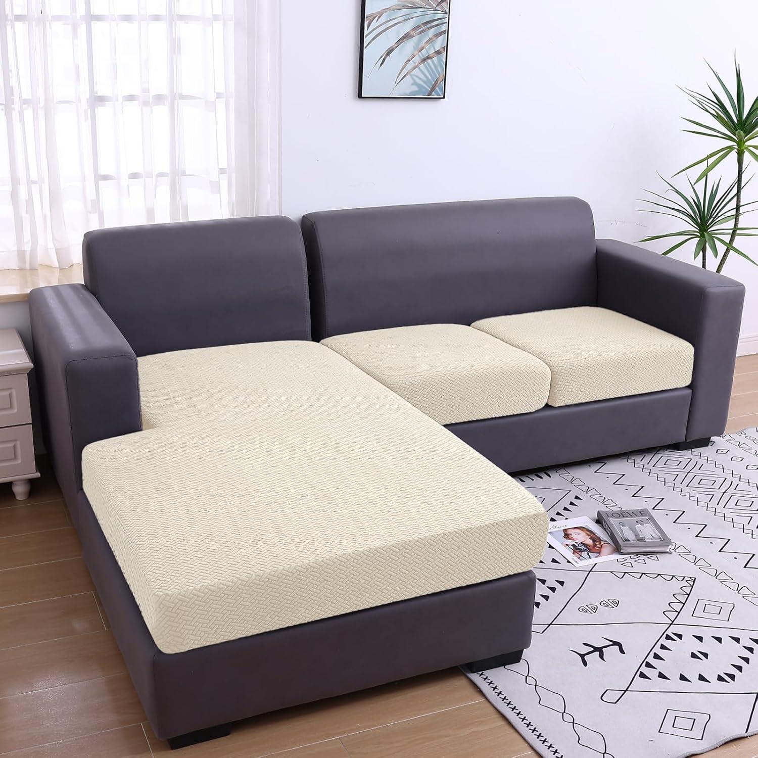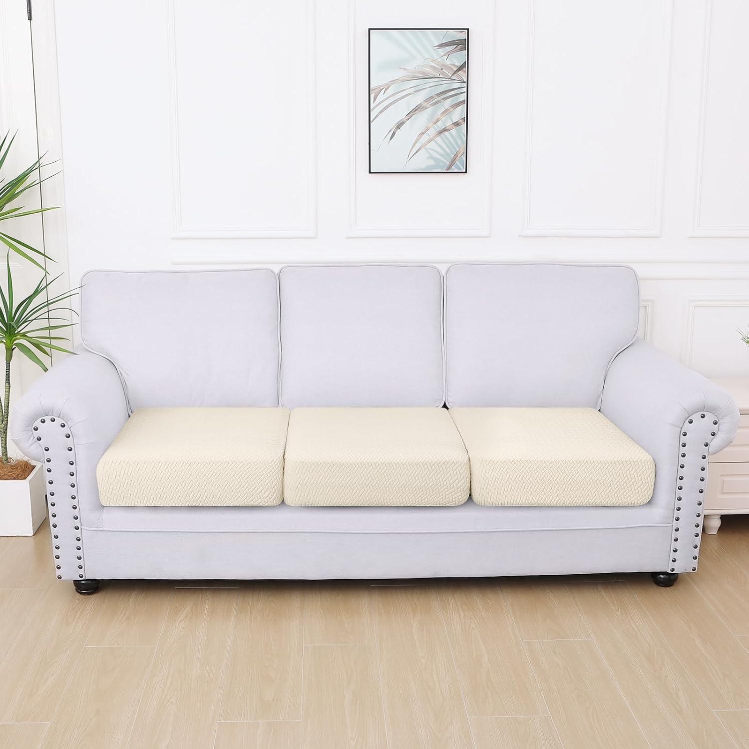 Smiry Waterproof Couch Cushion Covers, Stretch Jacquard Thick Sofa Cushion Covers, Washable Seat Slipcover Elastic Furniture Protector for Pets, Kid (3PC, Grey)(Beige)