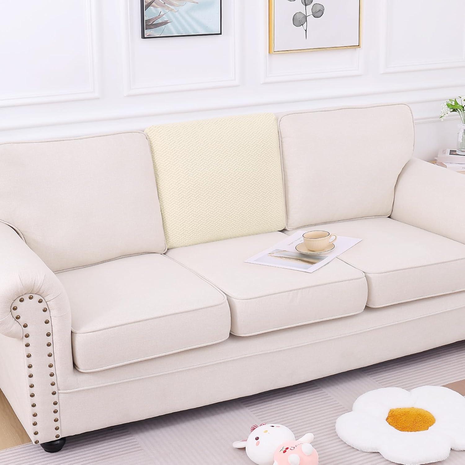 [Soft & High Stretchy] The sofa covers washable crafted from newest jacquard knitted fabric, embellished with long checks patterns. Soft, comfortable, sturdy and long lasting, give a stylish look to your furniture. Highly elastic sofa cushion covers conform snugly to sofas of all shapes—preventing gaps, slips, and wrinkles