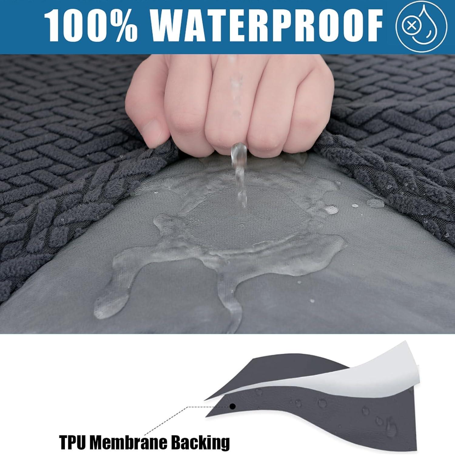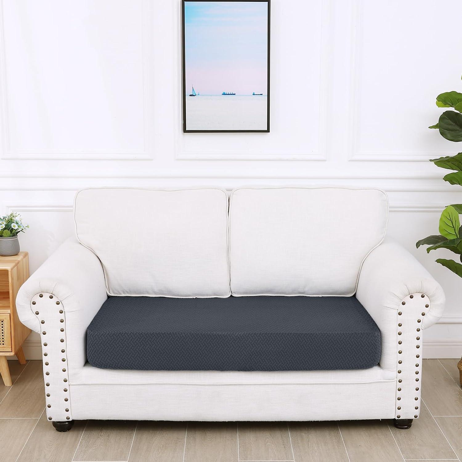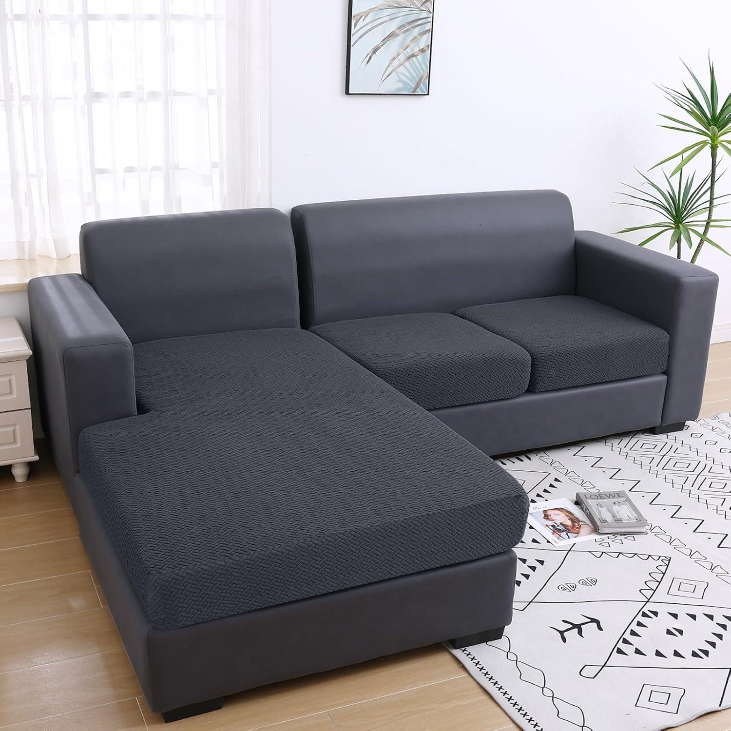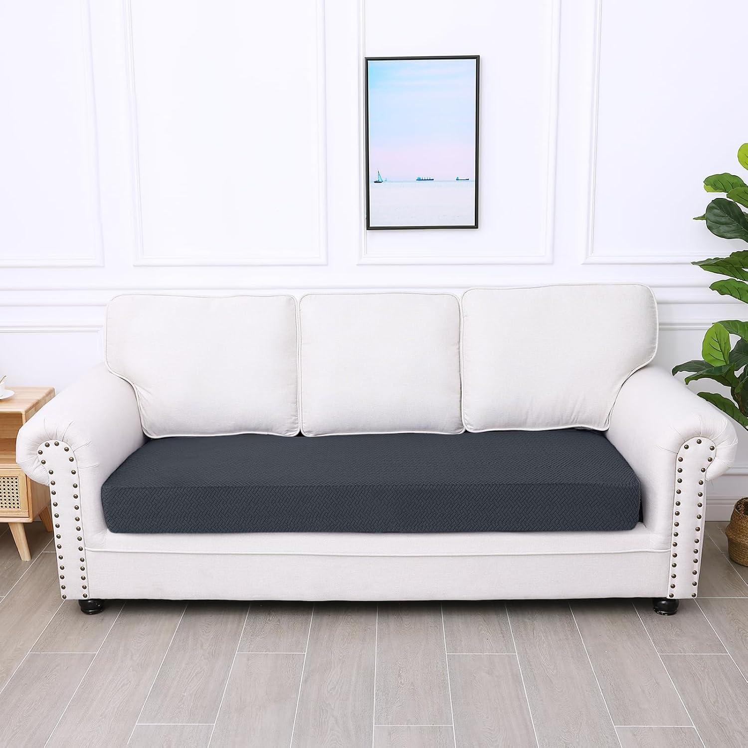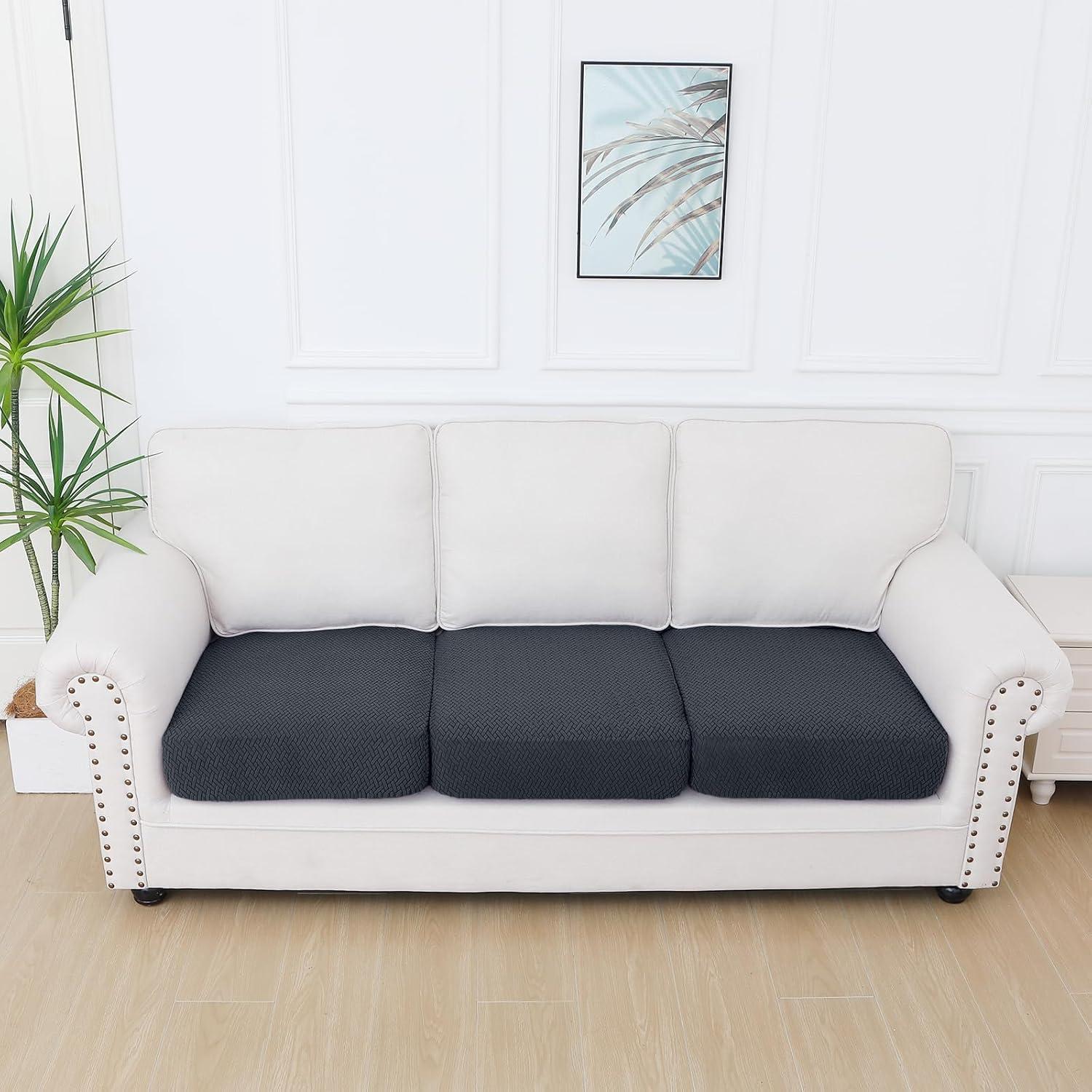 Smiry Waterproof Couch Cushion Covers, Stretch Jacquard Thick Sofa Cushion Covers, Washable Seat Slipcover Elastic Furniture Protector for Pets, Kid (3PC, Grey)(Dark Grey)