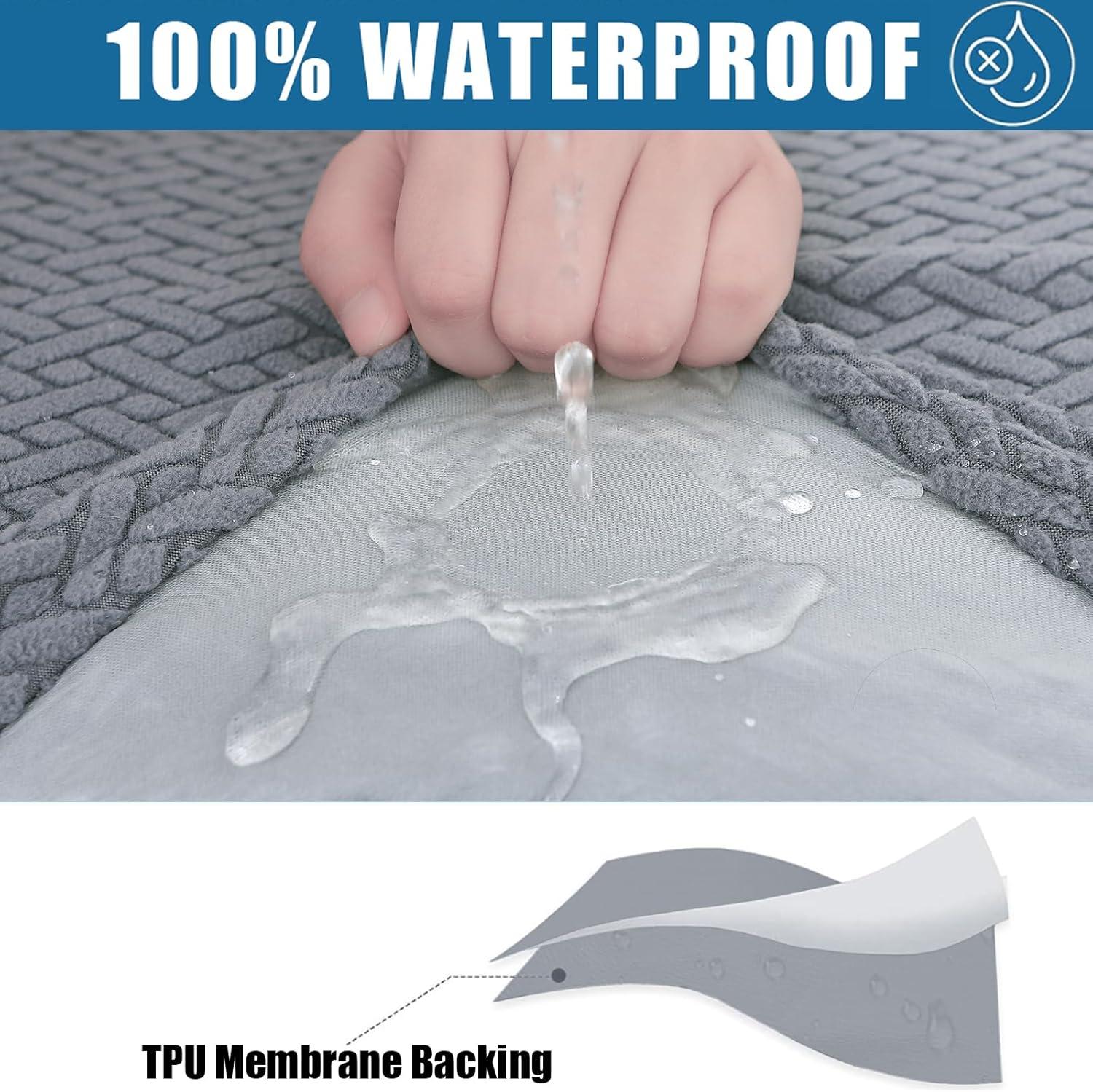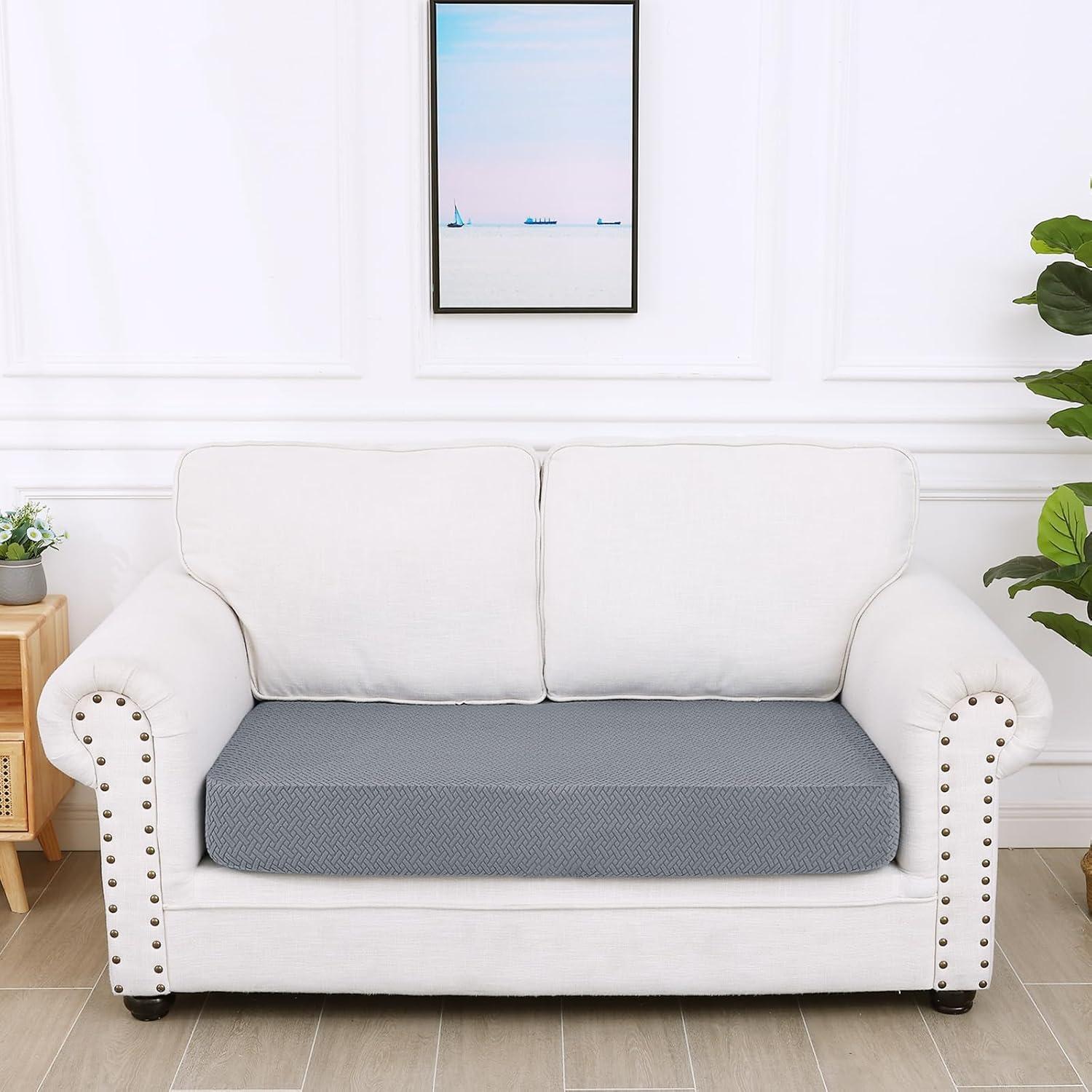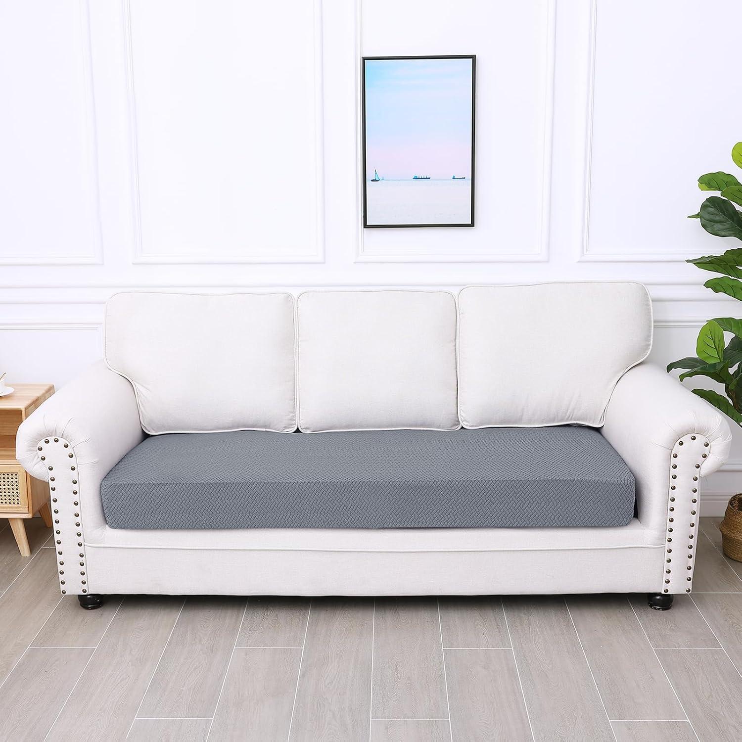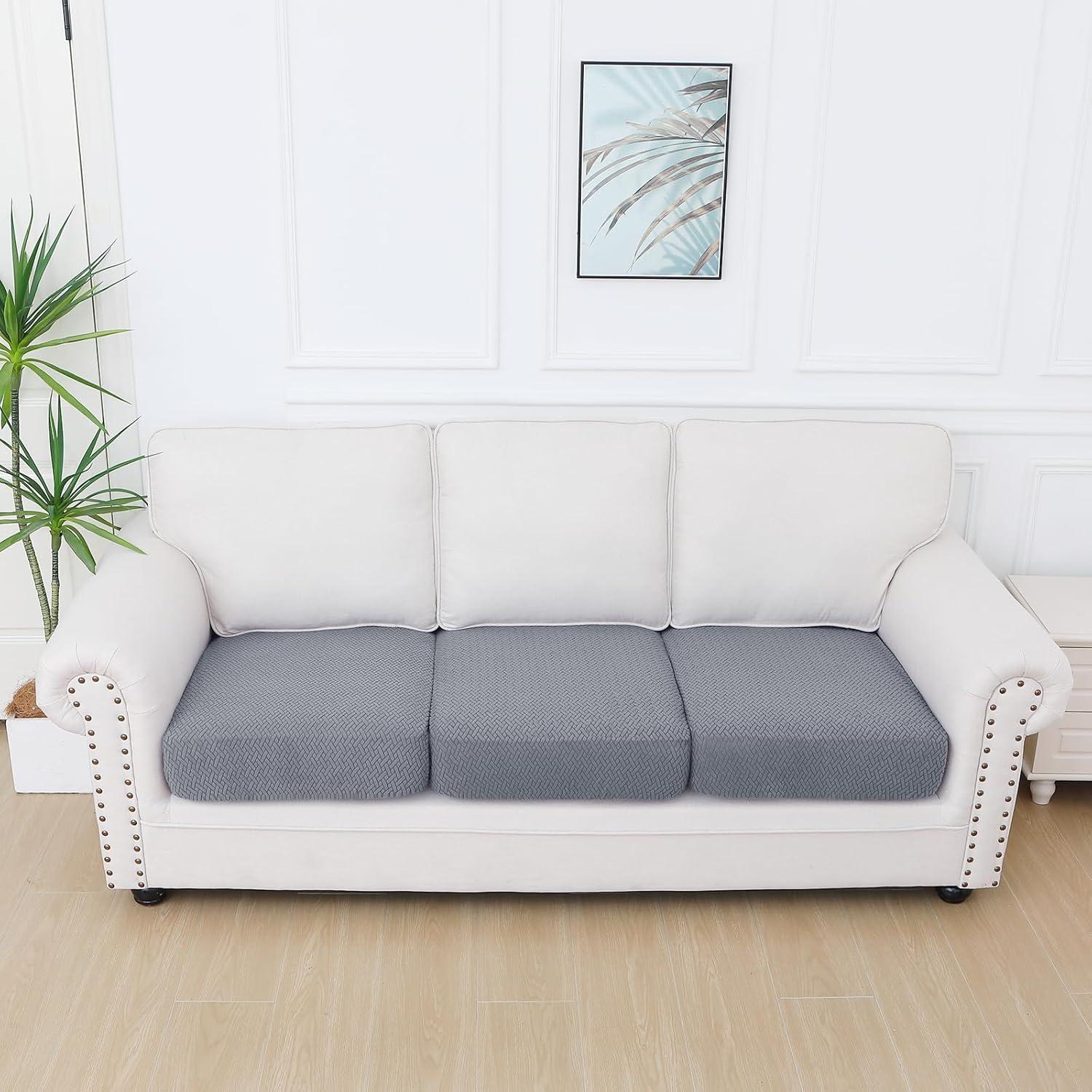 Smiry Waterproof Couch Cushion Covers, Stretch Jacquard Thick Sofa Cushion Covers, Washable Seat Slipcover Elastic Furniture Protector for Pets, Kid (3PC, Grey)(Grey)
