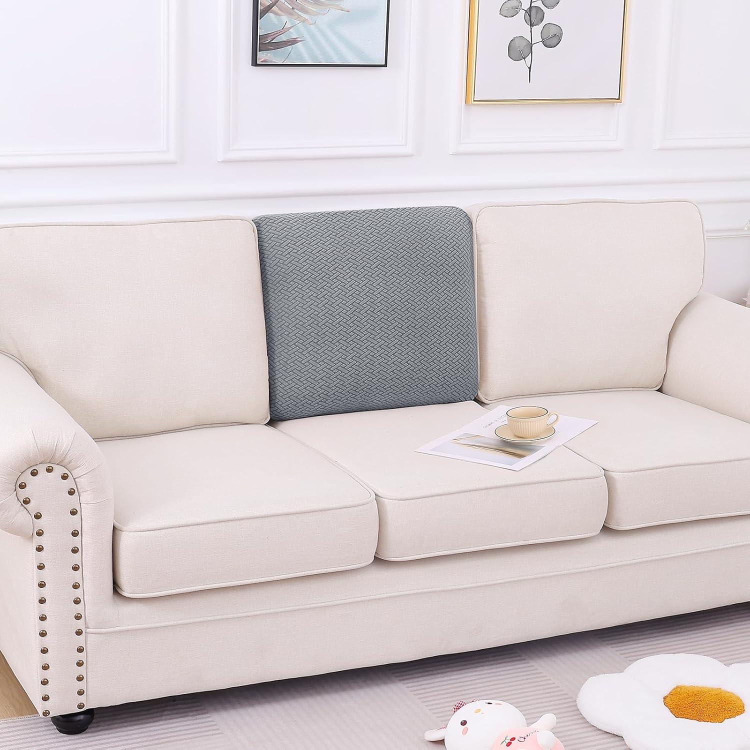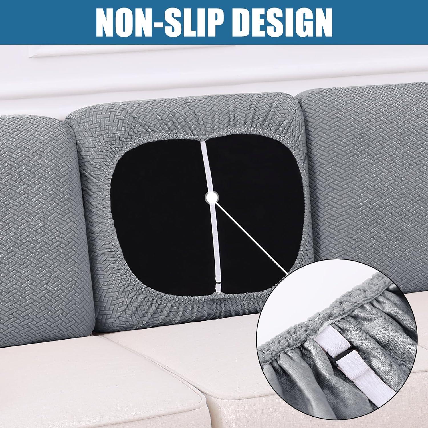 [Soft & High Stretchy] The sofa covers washable crafted from newest jacquard knitted fabric, embellished with long checks patterns. Soft, comfortable, sturdy and long lasting, give a stylish look to your furniture. Highly elastic sofa cushion covers conform snugly to sofas of all shapes—preventing gaps, slips, and wrinkles