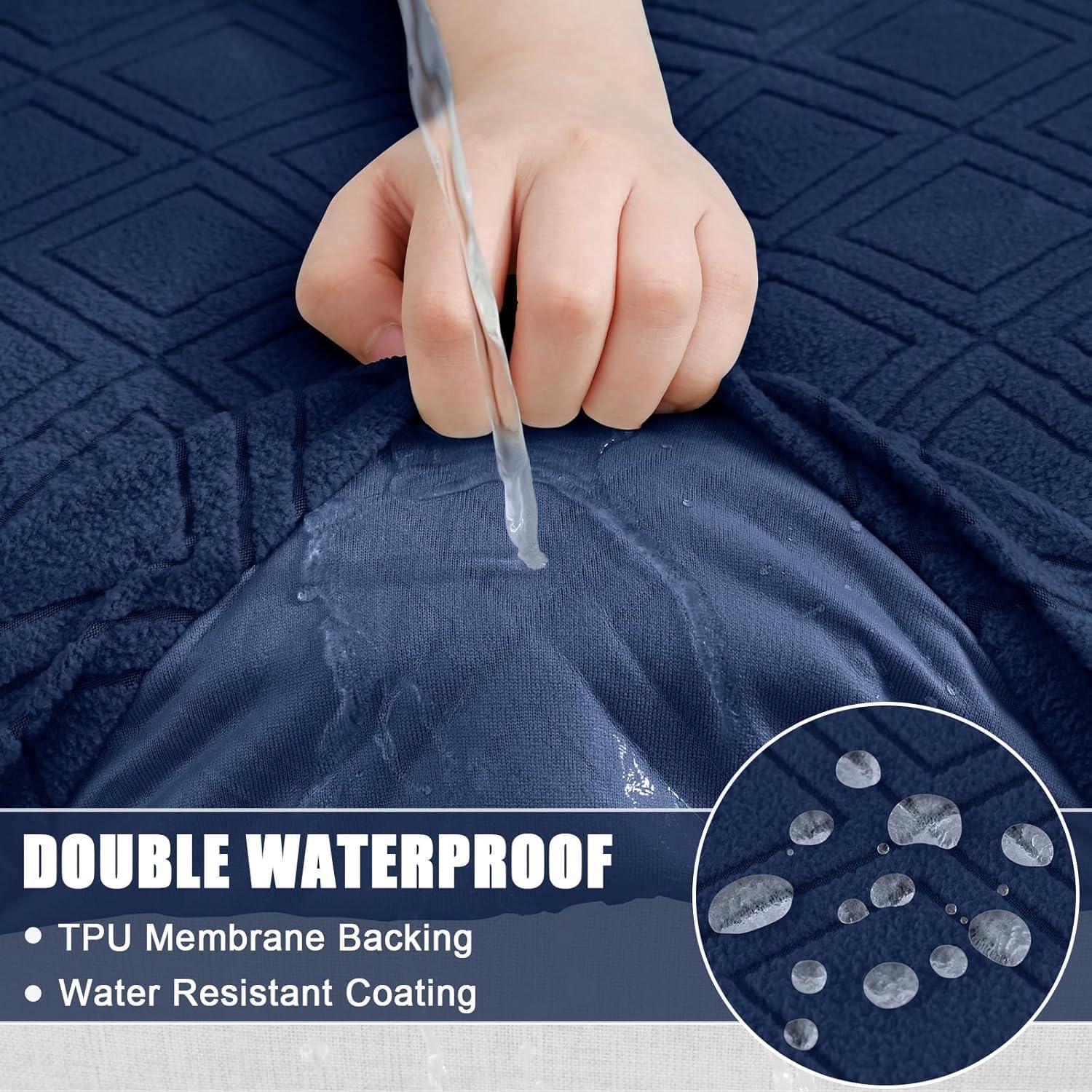 Smiry Waterproof Couch Cushion Covers, Stretch Sofa Covers for 2 Cushion Couch, Washable Sofa Slipcover Elastic Furniture Protector for Pets, Kids (2 Pack, Navy)