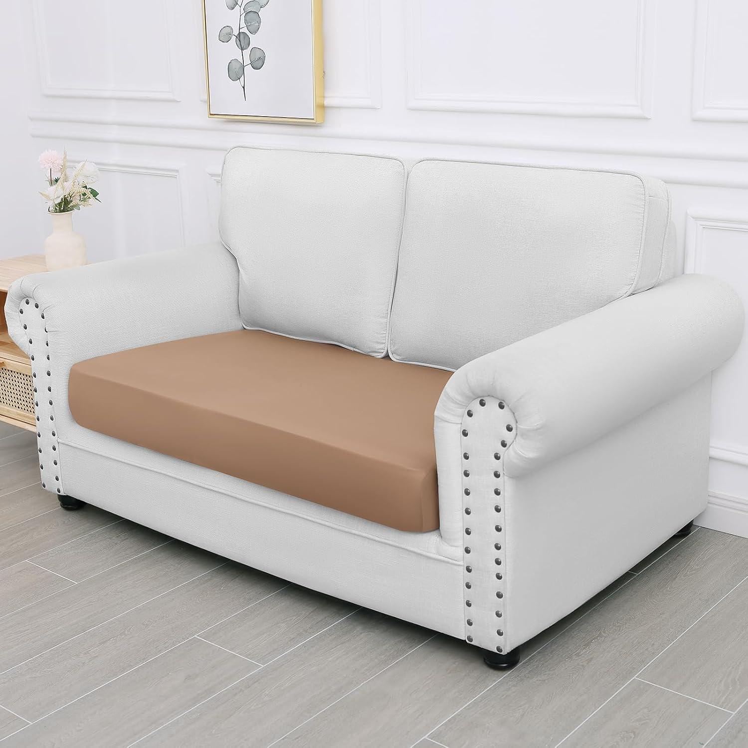 Smiry Waterproof Couch Cushion Covers, Stretch Washable Sofa Cushion Cover, Soft Sofa Slipcover Elastic Non-Slip Furniture Protector for Pets, Kid (3 Pack, Chocolate)(Camel)