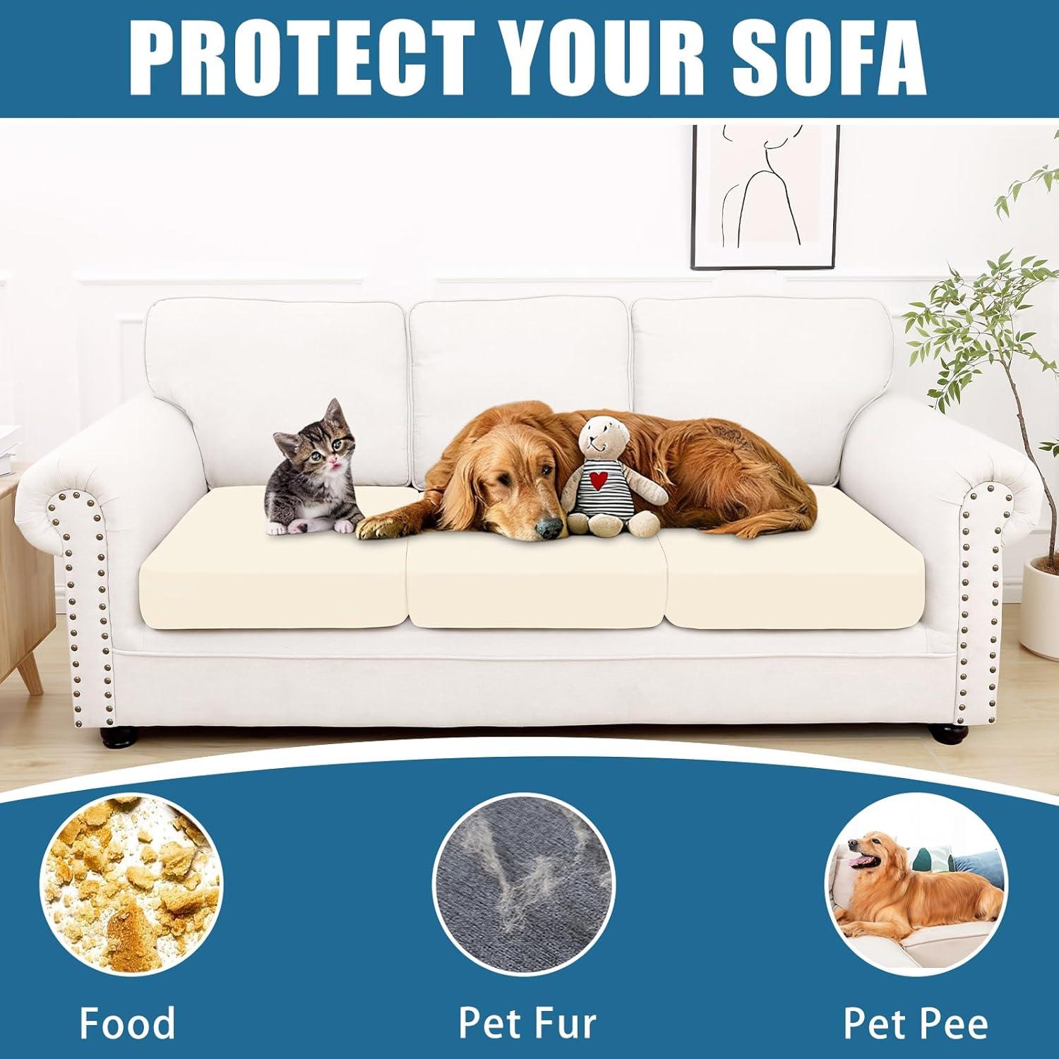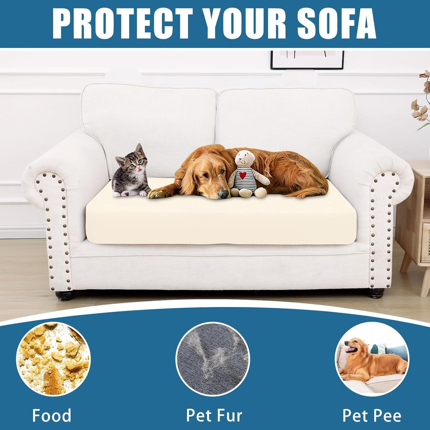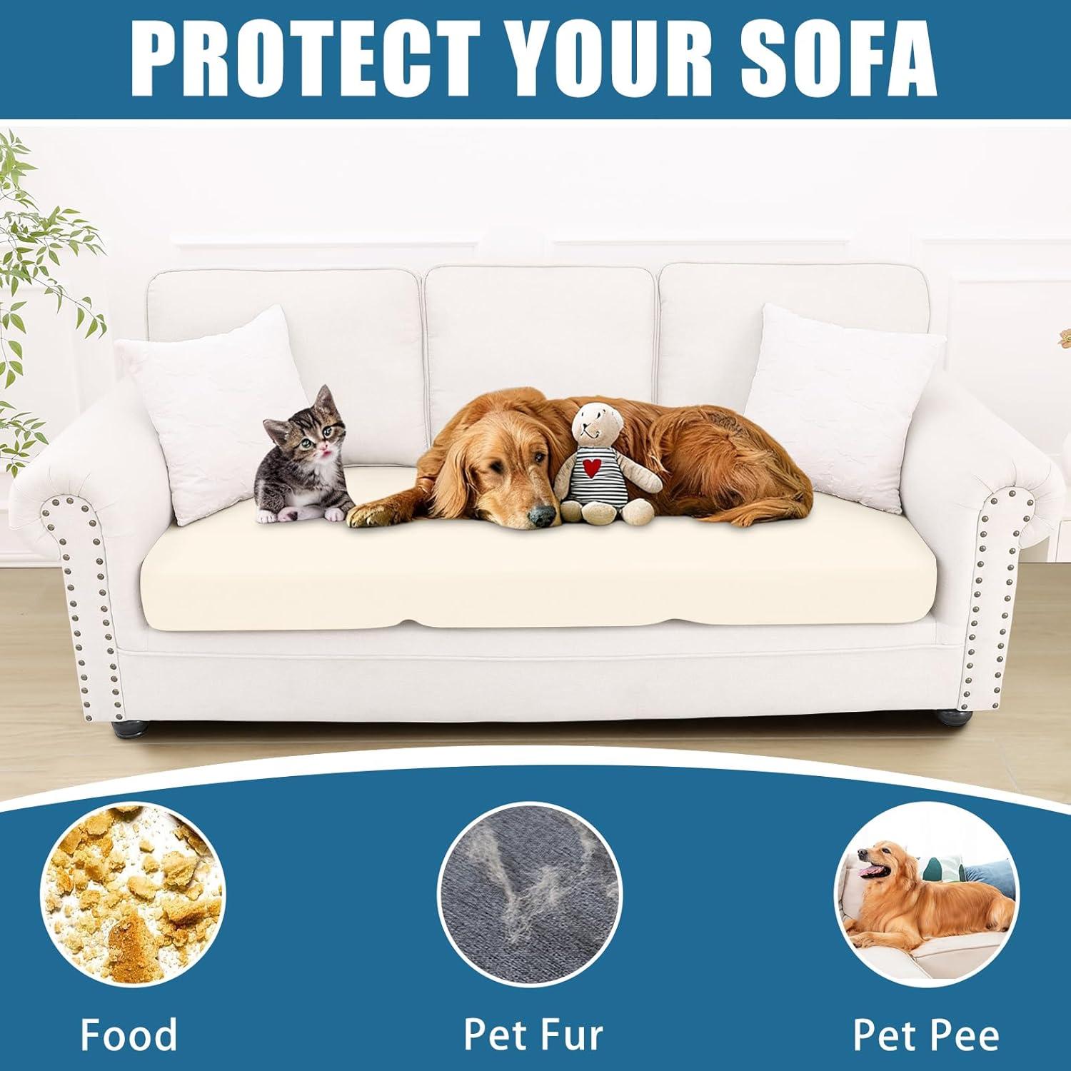 Smiry Waterproof Couch Cushion Covers, Stretch Washable Sofa Cushion Cover, Soft Sofa Slipcover Elastic Non-Slip Furniture Protector for Pets, Kid (Medium, Mocha)(Beige)