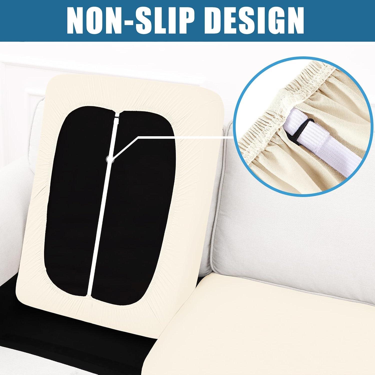 [Non-Slip Design] The couch covers for sofa feature elastic straps and metal hooks to ensure a secure fit. Elastic band is sewn along the bottom edge, cushion covers are easy to install and take off, fit many shapes of sofa cushions very well