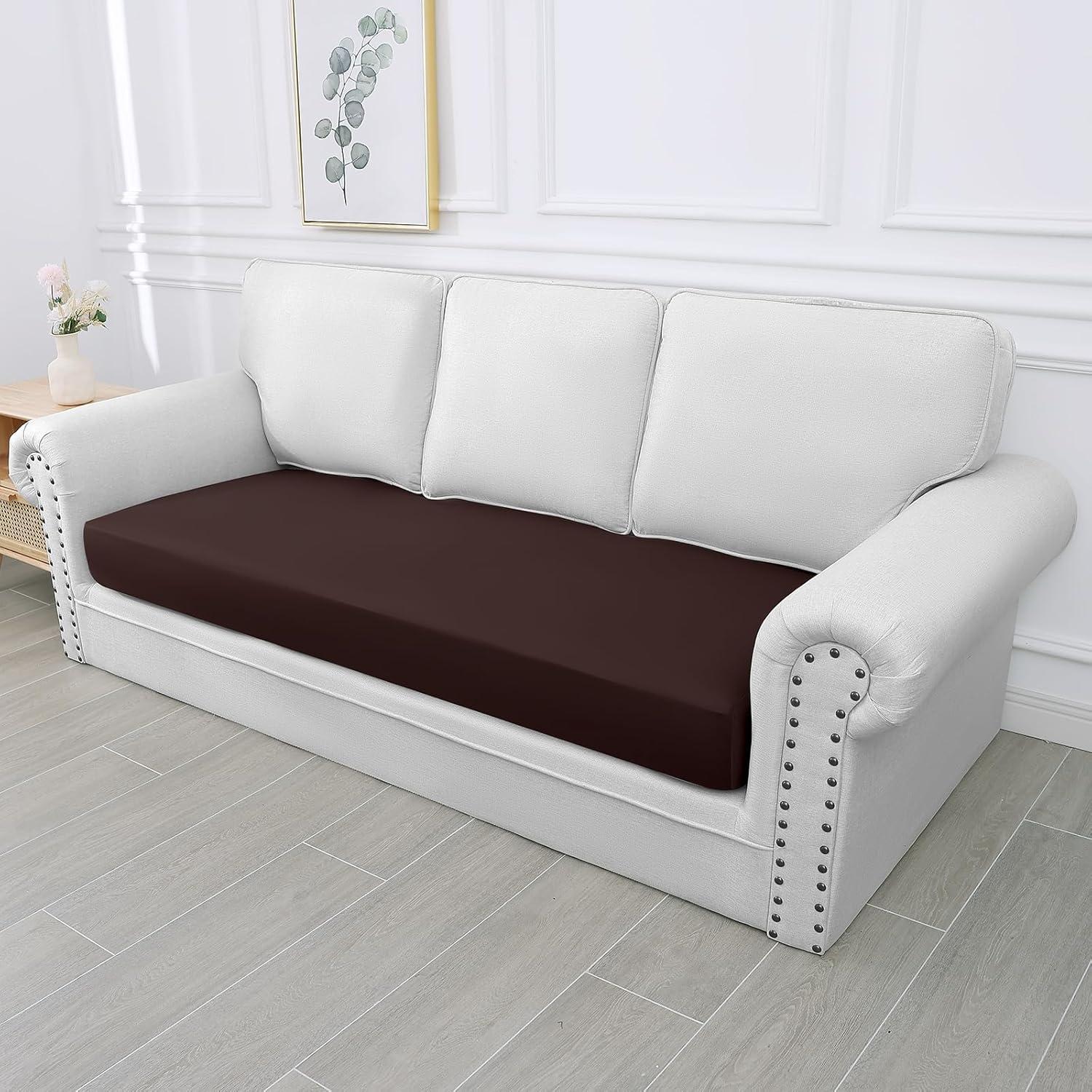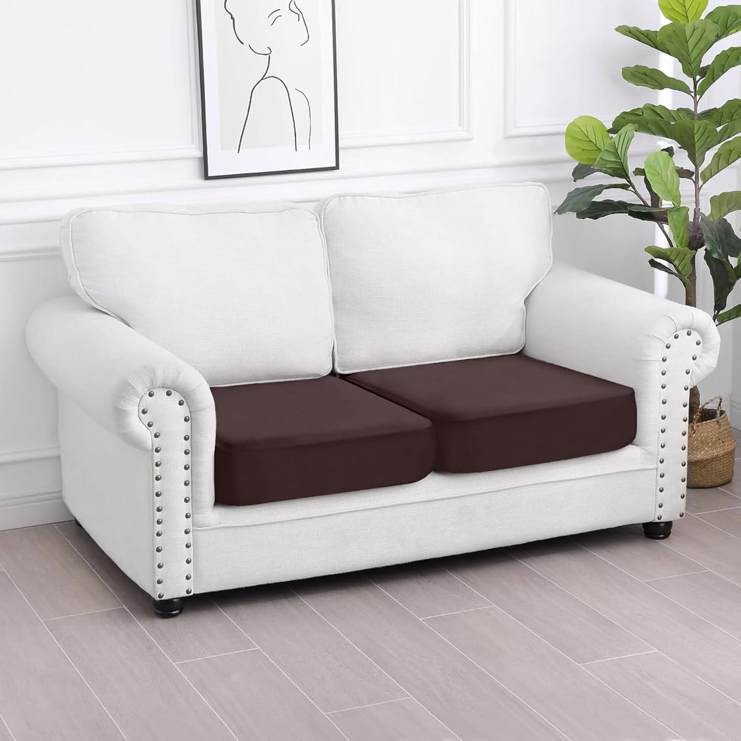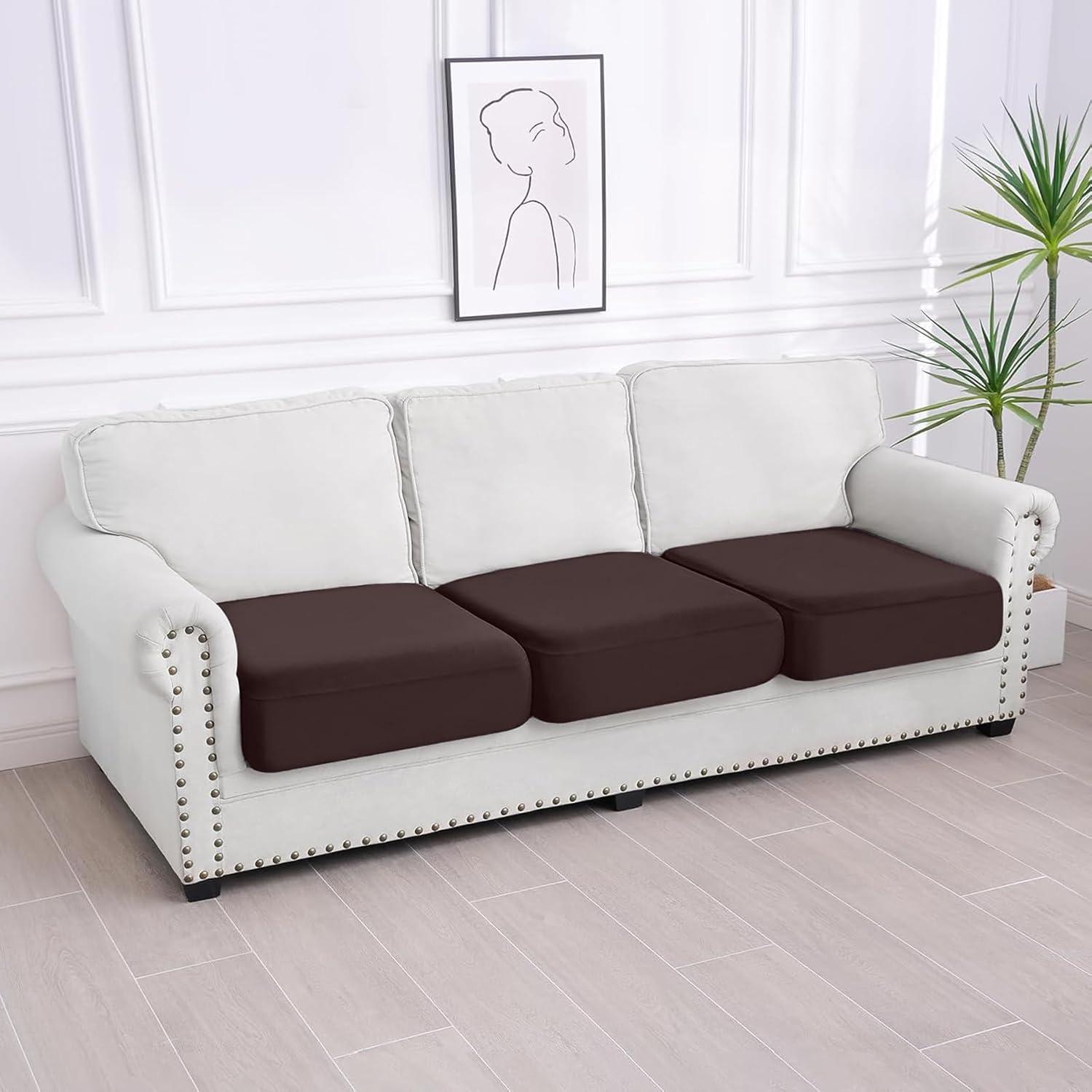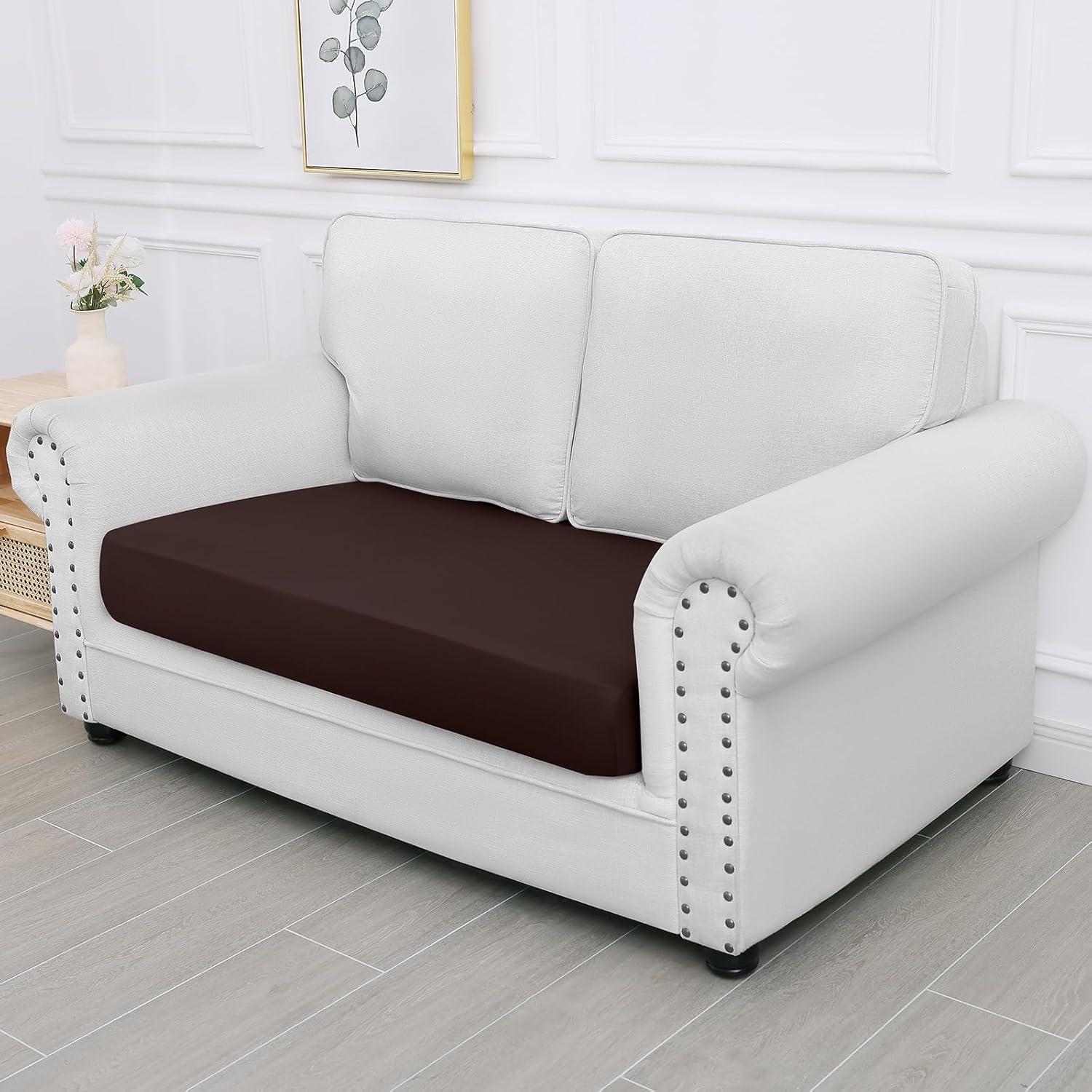 Smiry Waterproof Couch Cushion Covers, Stretch Washable Sofa Cushion Cover, Soft Sofa Slipcover Elastic Non-Slip Furniture Protector for Pets, Kid (Medium, Mocha)(Chocolate)