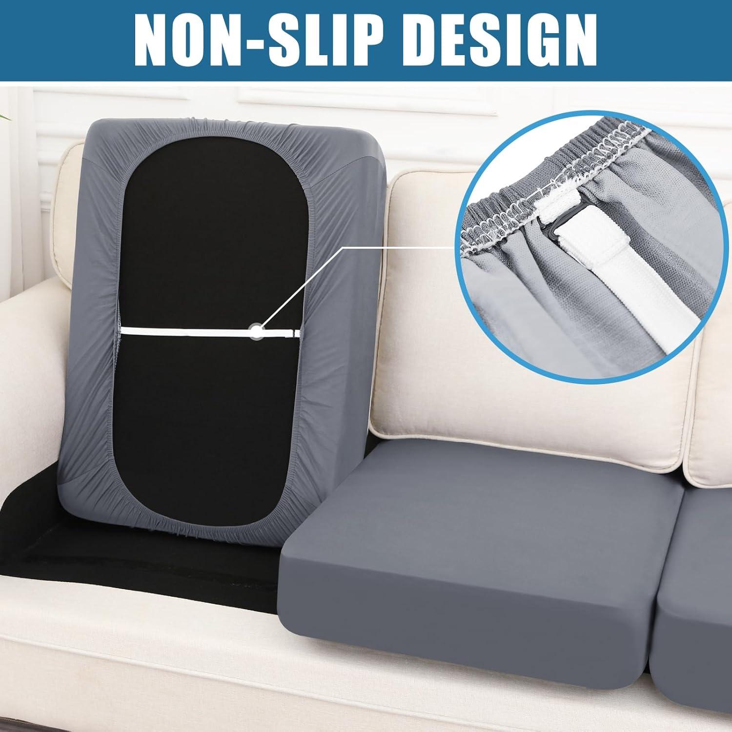 [Non-Slip Design] The couch covers for sofa feature elastic straps and metal hooks to ensure a secure fit. Elastic band is sewn along the bottom edge, cushion covers are easy to install and take off, fit many shapes of sofa cushions very well