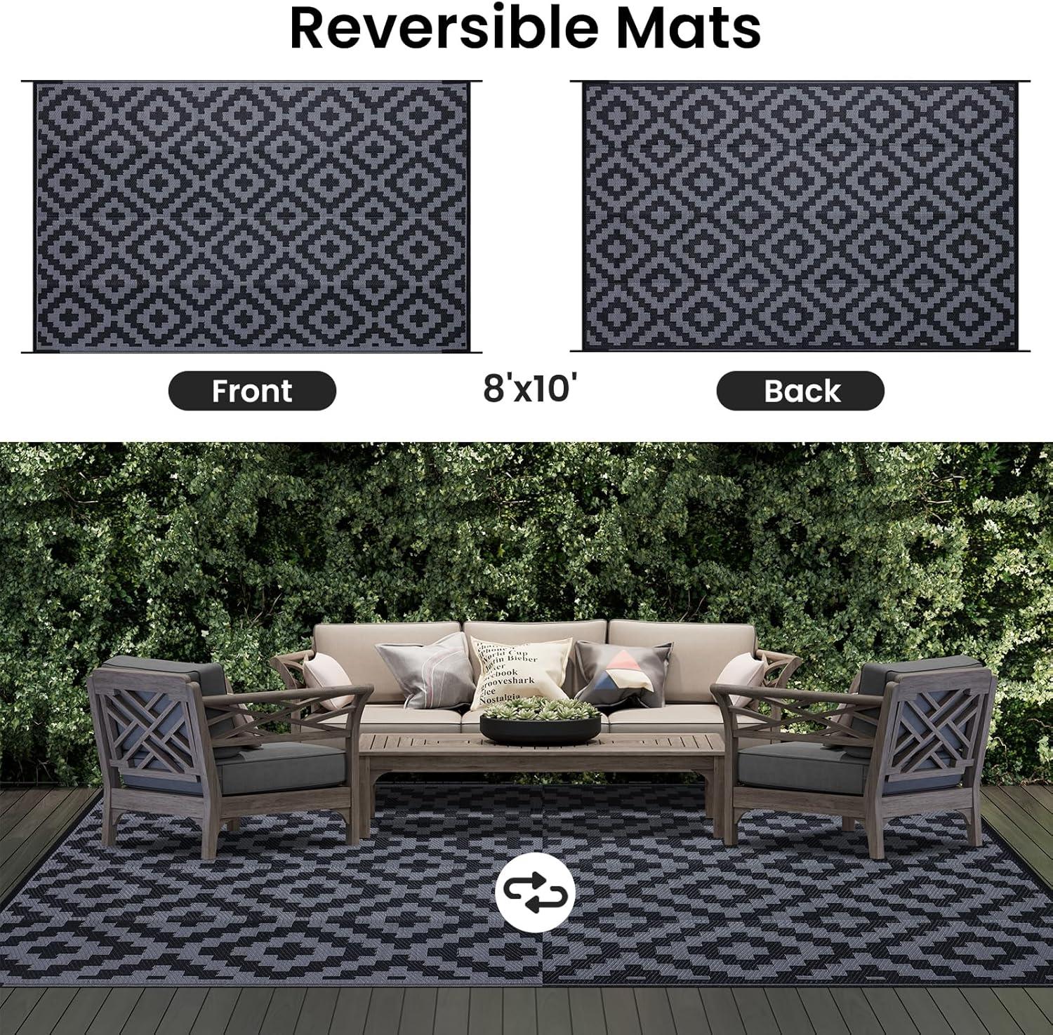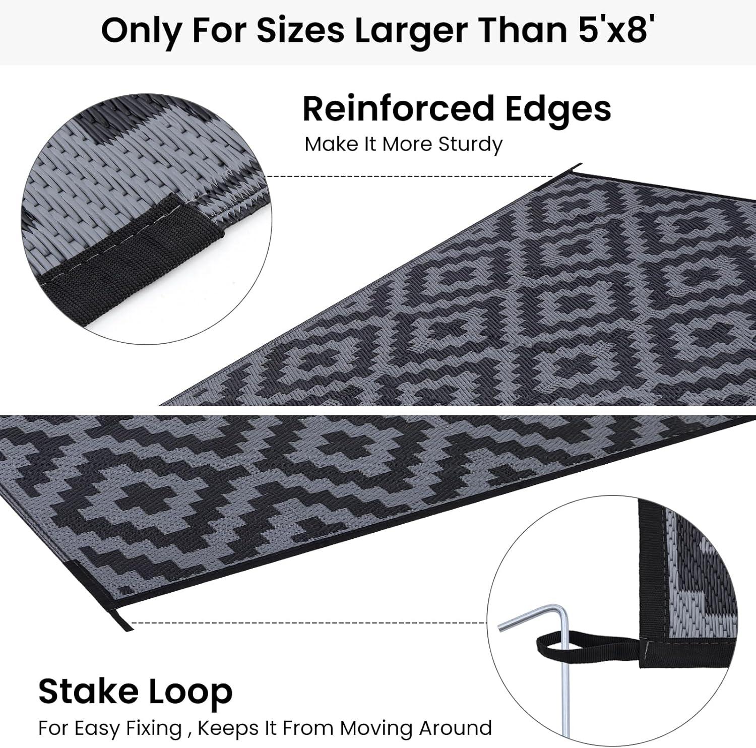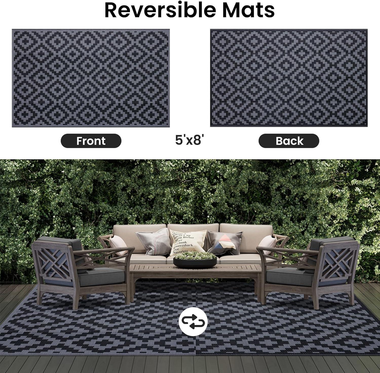 Smiry Waterproof Outdoor Rug 5x8 ft, Reversible Plastic Straw Patio Camping Rugs, Outdoor Indoor RV Mat Carpet for Patio, Outside Entry, Backyard, Deck, Bench, Picnic, Camper, Black & White(Black and Grey)