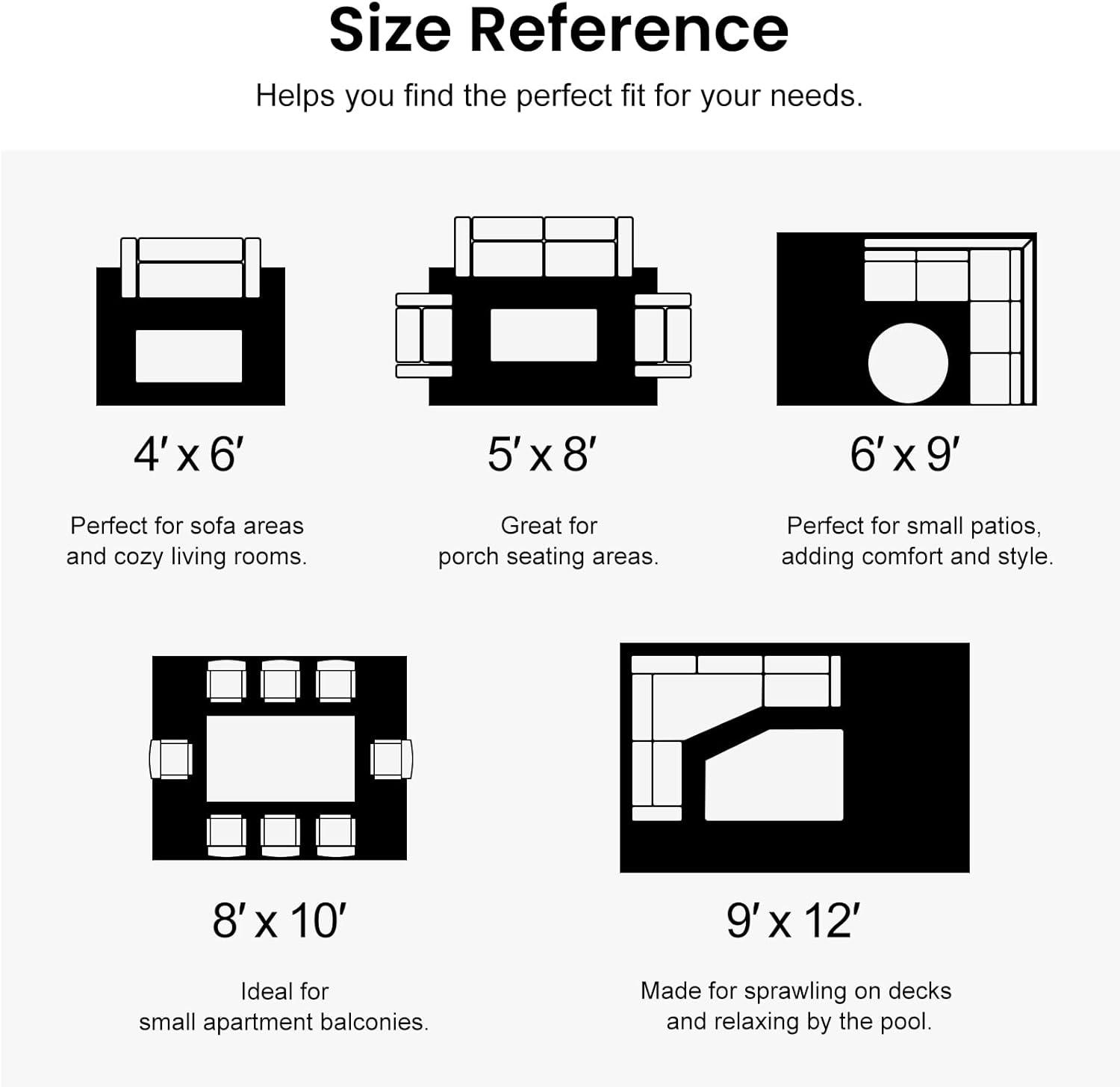 [Versatile & Functional] Our outdoor rugs 5×8 are soft, hard-wearing, and suitable for patios, decks, gardens, beaches, picnics, RV camping, garages, balcony, backyard, living rooms, indoor and outdoor use.