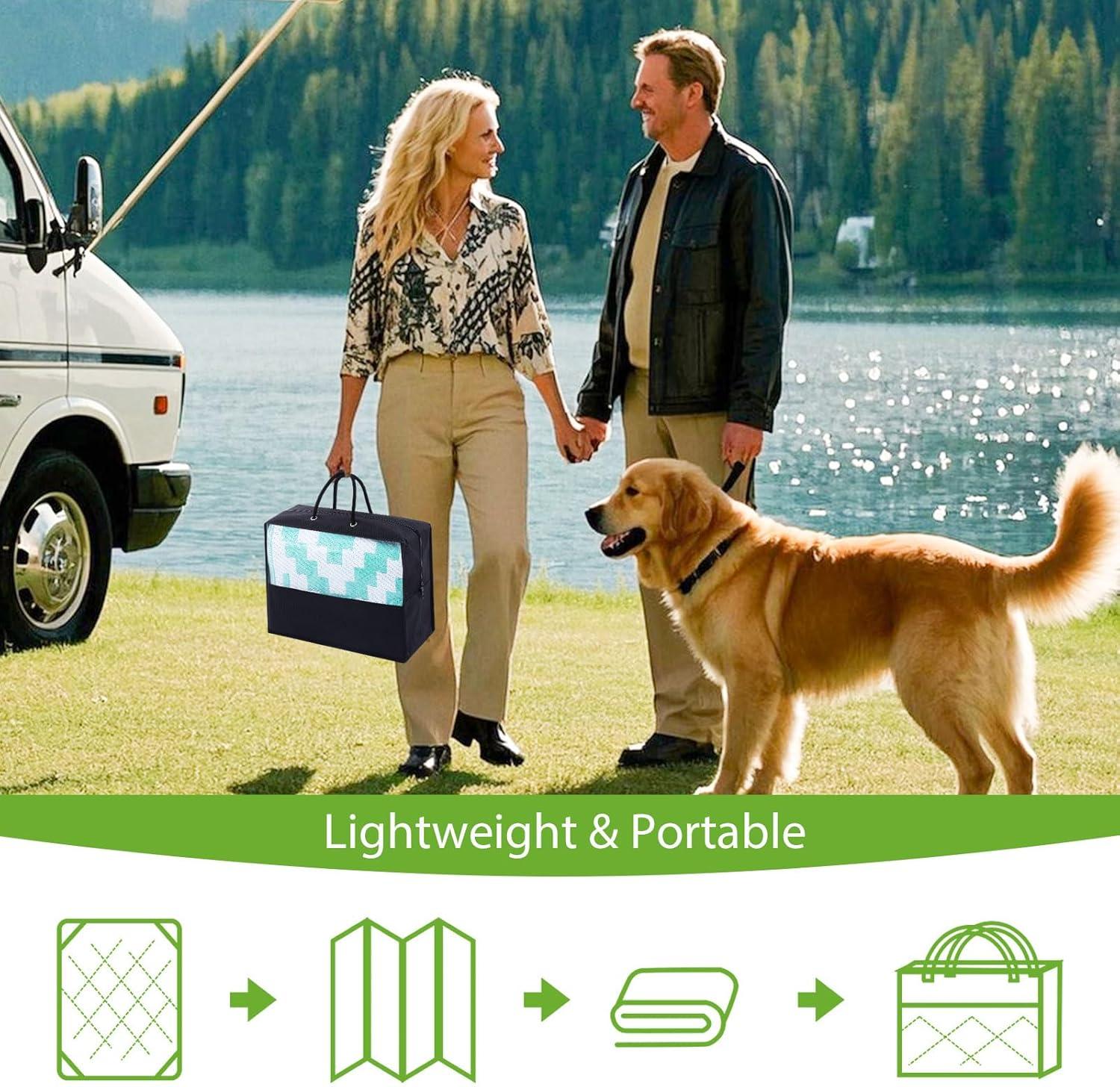 [Reversible & Portable] This outdoor patio rug features a classic geometric pattern and is double-sided, providing versatile color options and extending its lifespan. It also includes a carrying bag, making it perfect for travel.