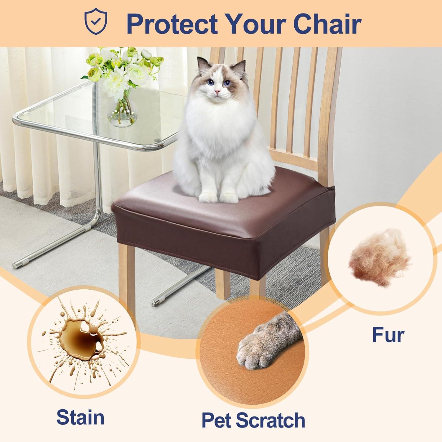 [Waterproof Chair Cover] Smiry chair covers are made of high quality faux pu leather. Featuring waterproof performance can effectively blocks spills and leaks. Our dining chair covers protect your chair from various kind of liquid stains, dirt, scratches, daily tear and wear