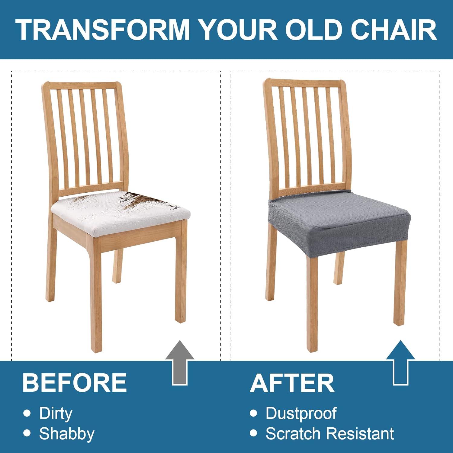 Smiry Waterproof Seat Covers for Dining Room Chairs Set of 4, Stretch Jacquard Removable Washable Chair Seat Slipcovers Protector, No Rear Covers, Black(Grey)