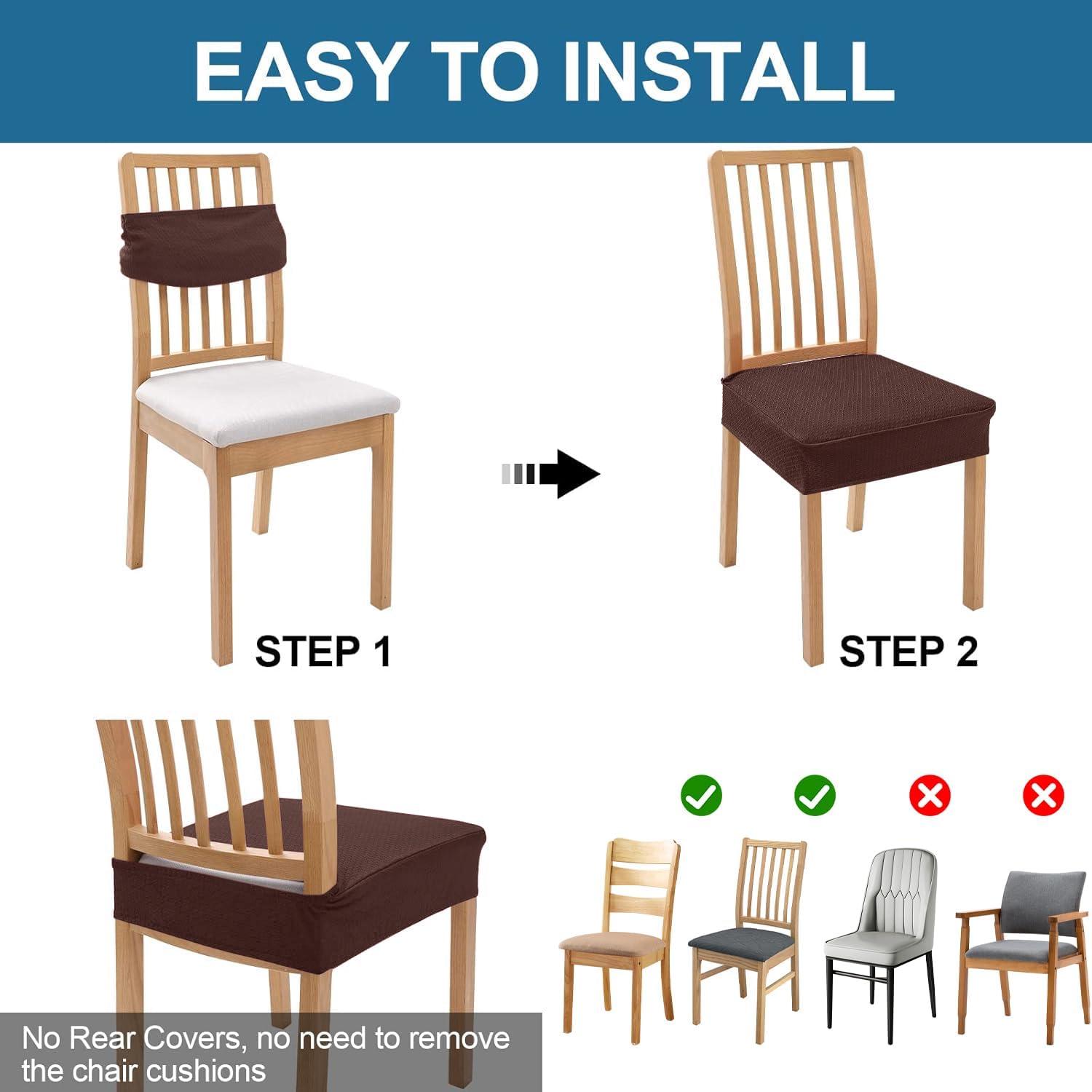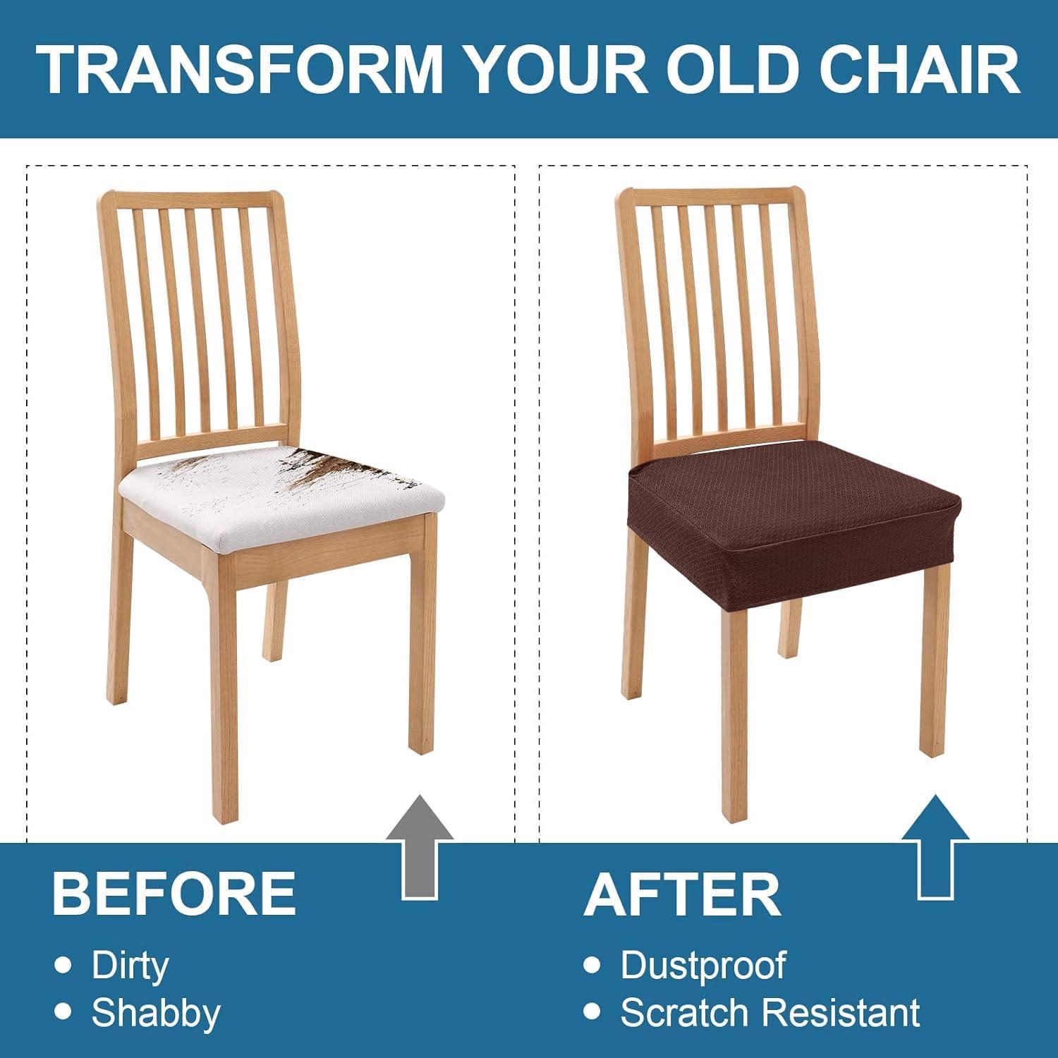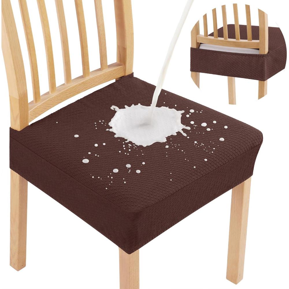 Smiry Waterproof Seat Covers for Dining Room Chairs Set of 4, Stretch Jacquard Removable Washable Chair Seat Slipcovers Protector, No Rear Covers, Black(Light Chocolate)