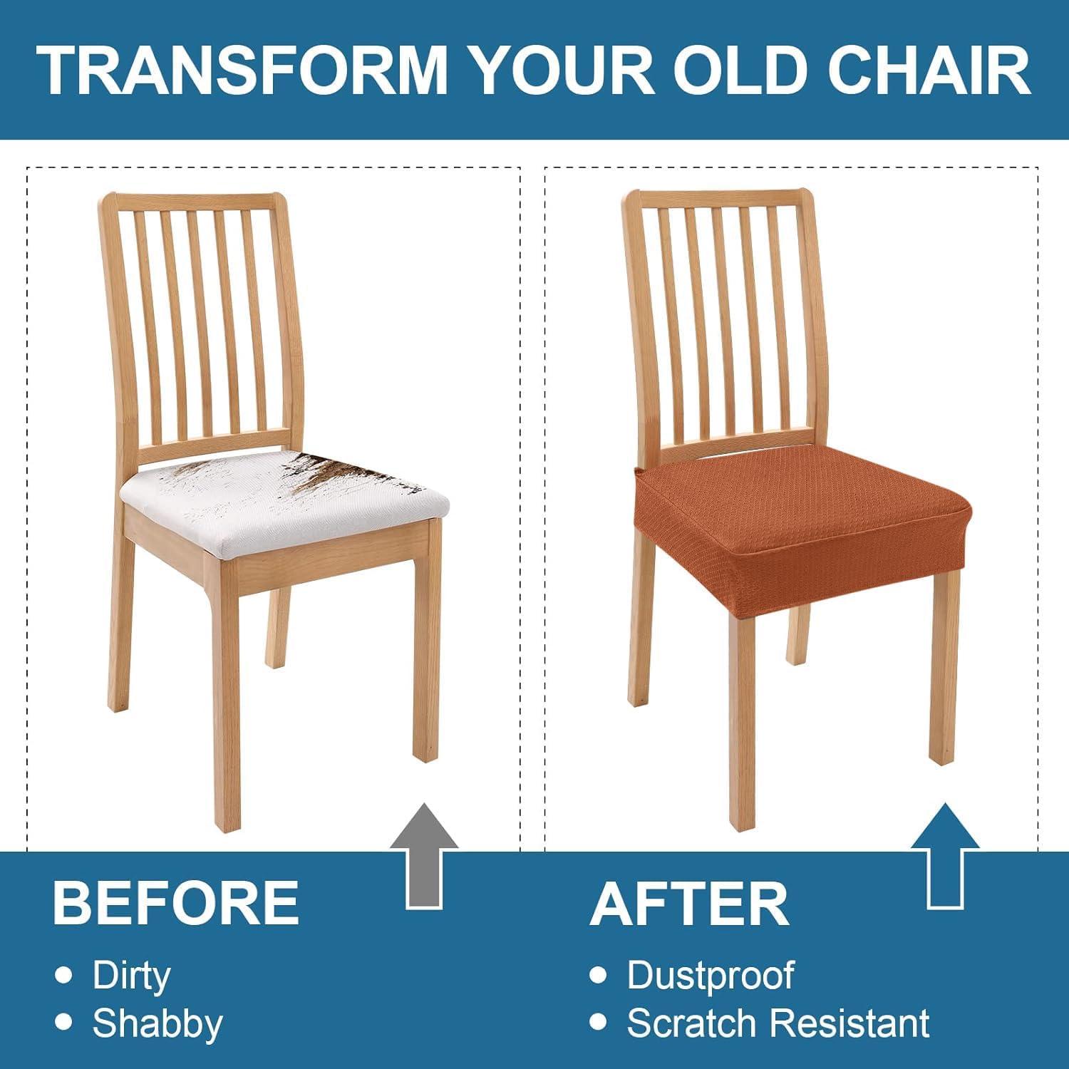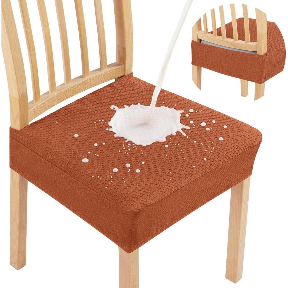 Smiry Waterproof Seat Covers for Dining Room Chairs Set of 4, Stretch Jacquard Removable Washable Chair Seat Slipcovers Protector, No Rear Covers, Black(Rust)