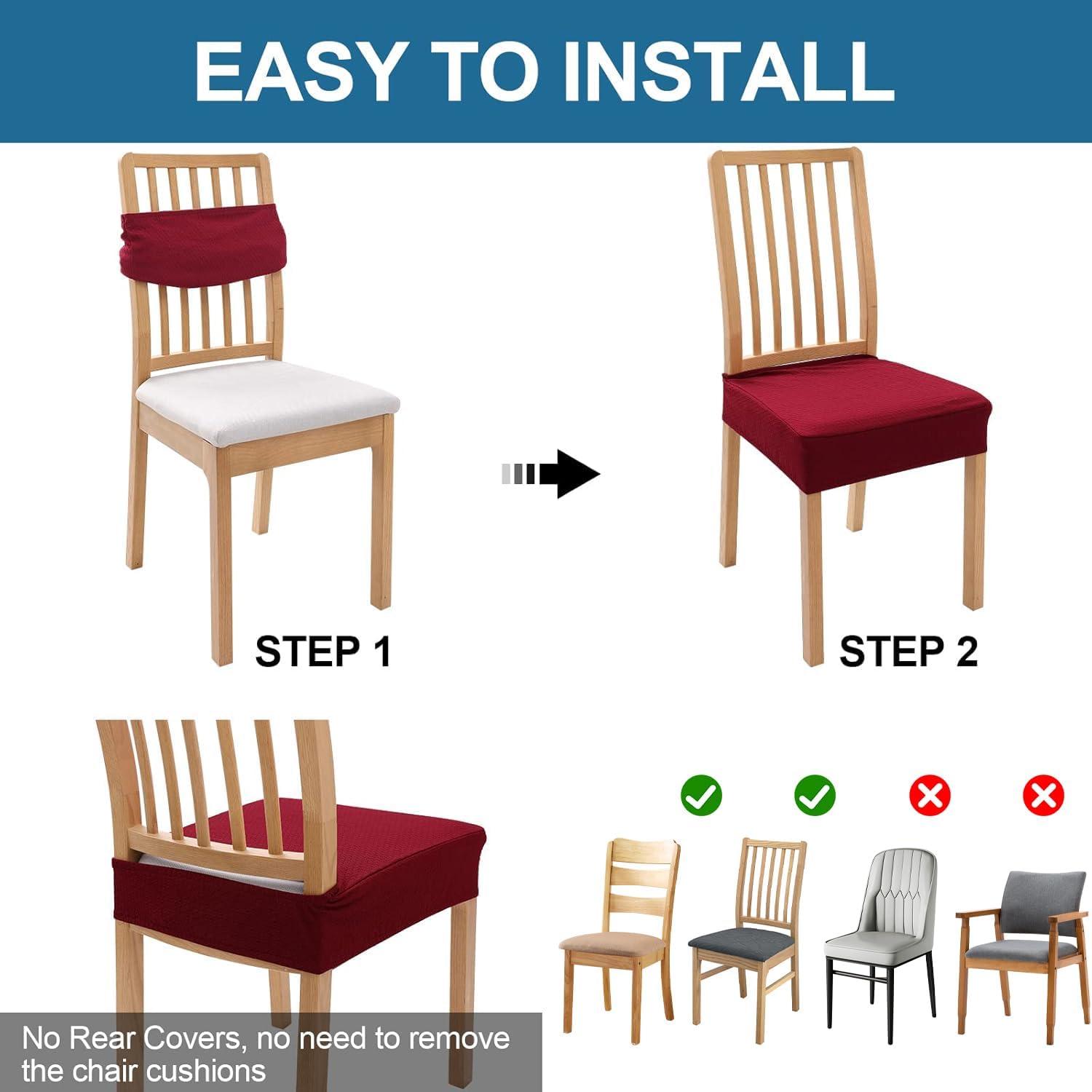 Smiry Waterproof Seat Covers for Dining Room Chairs Set of 4, Stretch Jacquard Removable Washable Chair Seat Slipcovers Protector, No Rear Covers, Black(Wine Red)