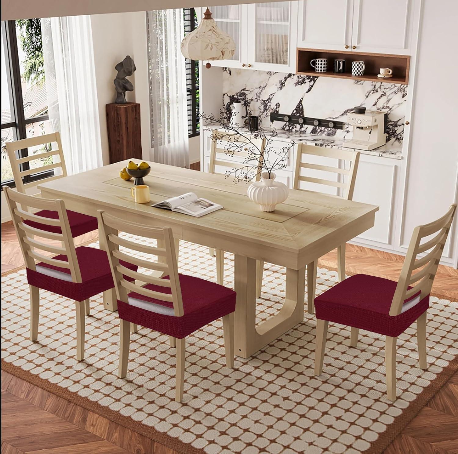 Be the first to review “Smiry Waterproof Seat Covers for Dining Room Chairs Set of 4, Stretch Jacquard Removable Washable Chair Seat Slipcovers Protector, No Rear Covers, Black(Wine Red)”