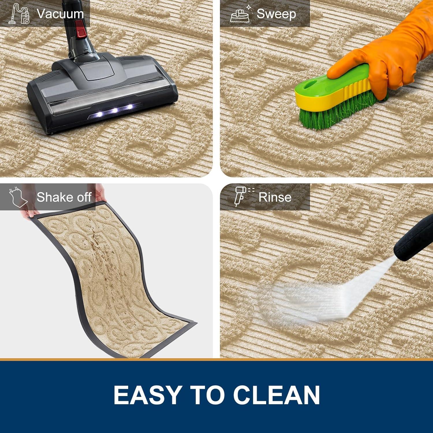 【Easy to Clean】: Smiry front door mat can be swept with a broom, lifted by hand, or vacuumed. For a deeper cleaning, use a washing machine or hose to rinse, then hang it in a ventilated place to air-dry or tumble-dry. Do not use bleach or fabric softeners.