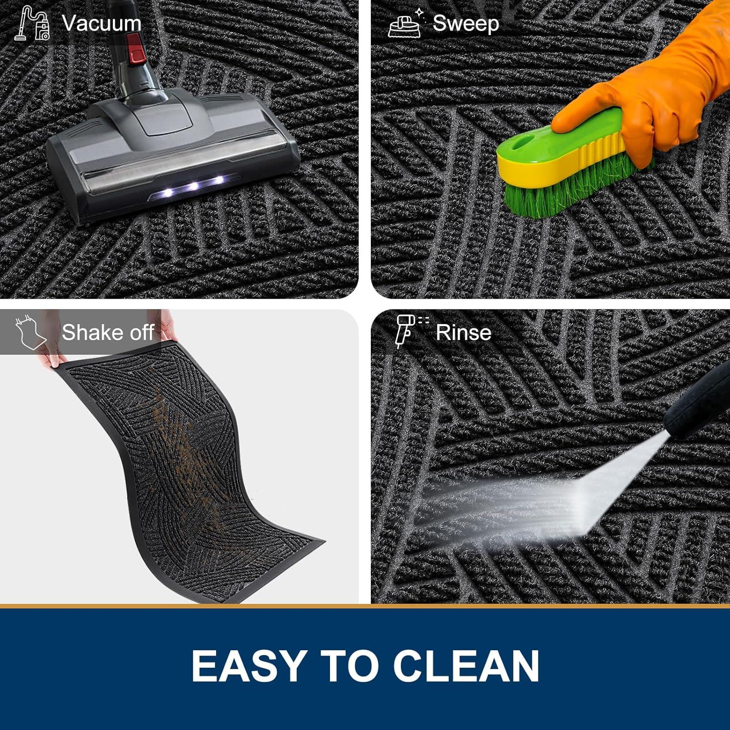 【Easy to Clean】: Smiry front door mat can be swept with a broom, lifted by hand, or vacuumed. For a deeper cleaning, use a washing machine or hose to rinse, then hang it in a ventilated place to air-dry or tumble-dry. Do not use bleach or fabric softeners.